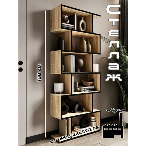 Купить Стеллаж деревянный 6 полок, 168х70х25 см, дуб Сонома с черной кромкой с доставкой по всей России. Стеллаж деревянный 6 полок, 168х70х25 см, дуб Сонома с черной кромкой: сравнение цен, характеристики, фото, актуальное наличие и цены.