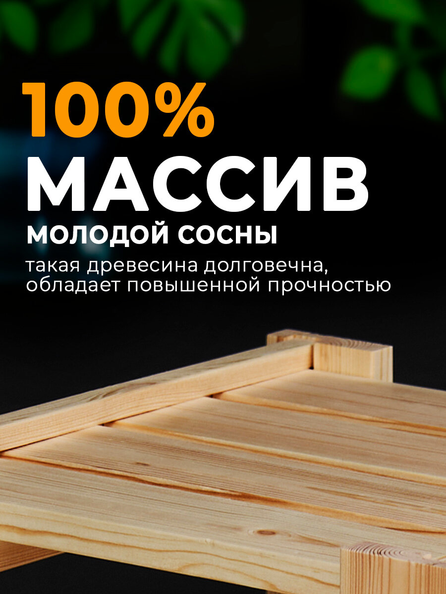 Изготовлен из древесины молодой северной сосны, обладающей наиболее плотной структурой, что повышает надежность и прочность конструкции.