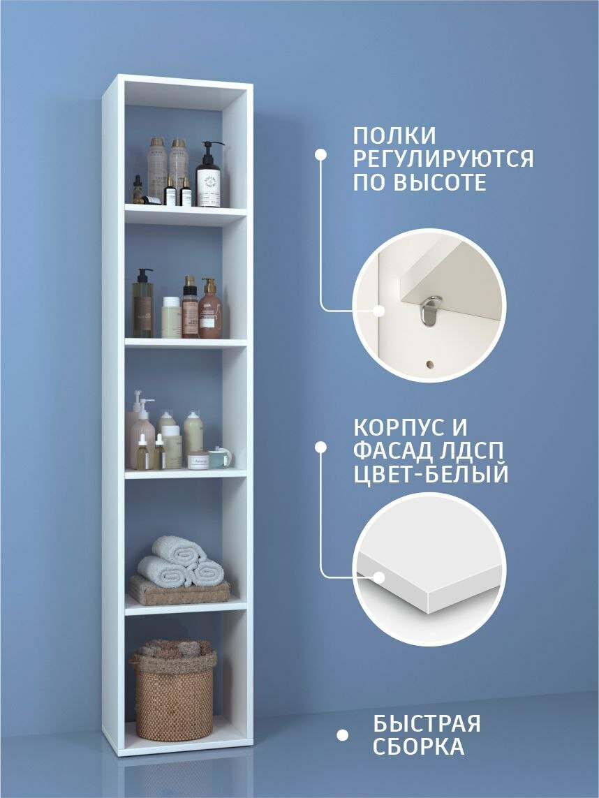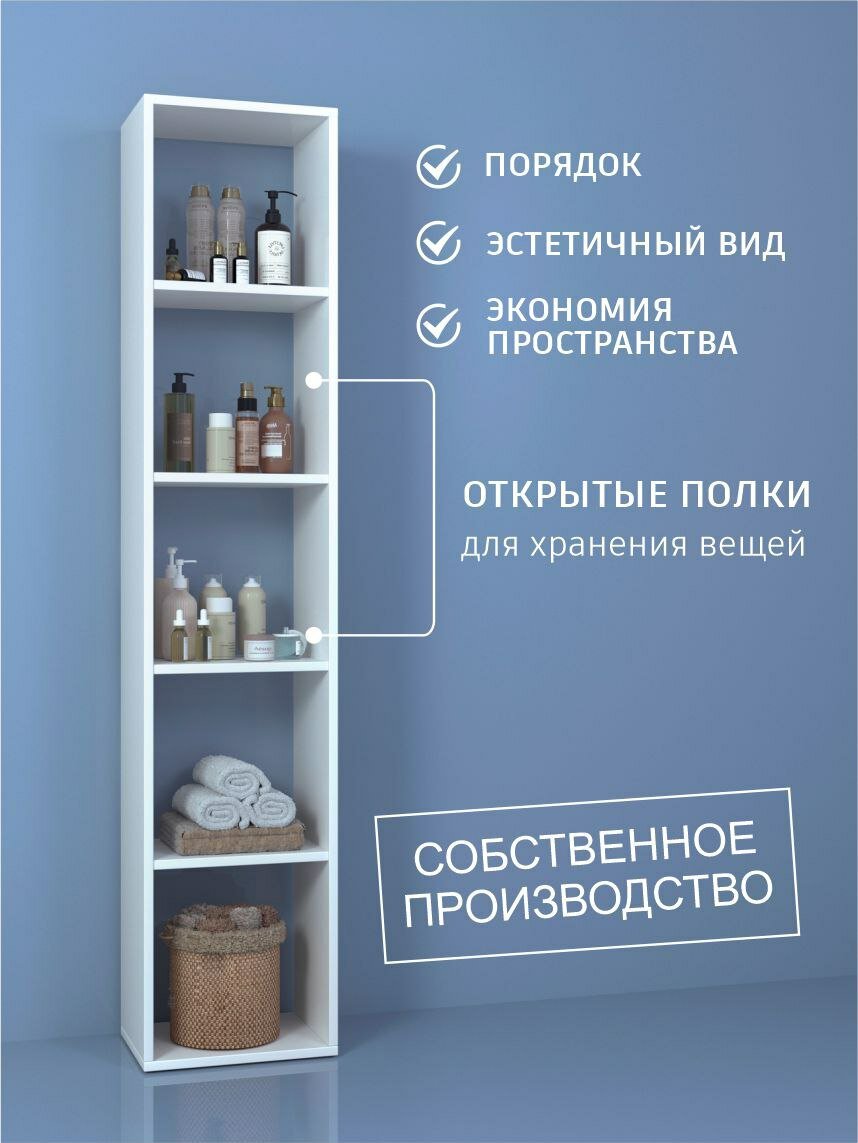 Стеллаж деревянный напольный подвесной, ЛДСП белый – это комплект мебели для ванной комнаты, который сочетает в себе функциональность и эстетику. Изготовлен из качественного ЛДСП, материал корпуса обеспечивает долговечность и устойчивость к влаге.