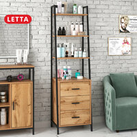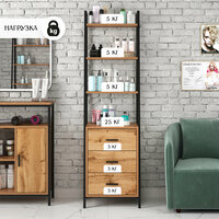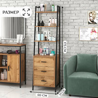 Стеллаж оборудован четырьмя полками и ящиками, что позволяет удобно разместить все ваши вещи. Открытая и частично закрытая конструкция обеспечивает легкий доступ к содержимому.