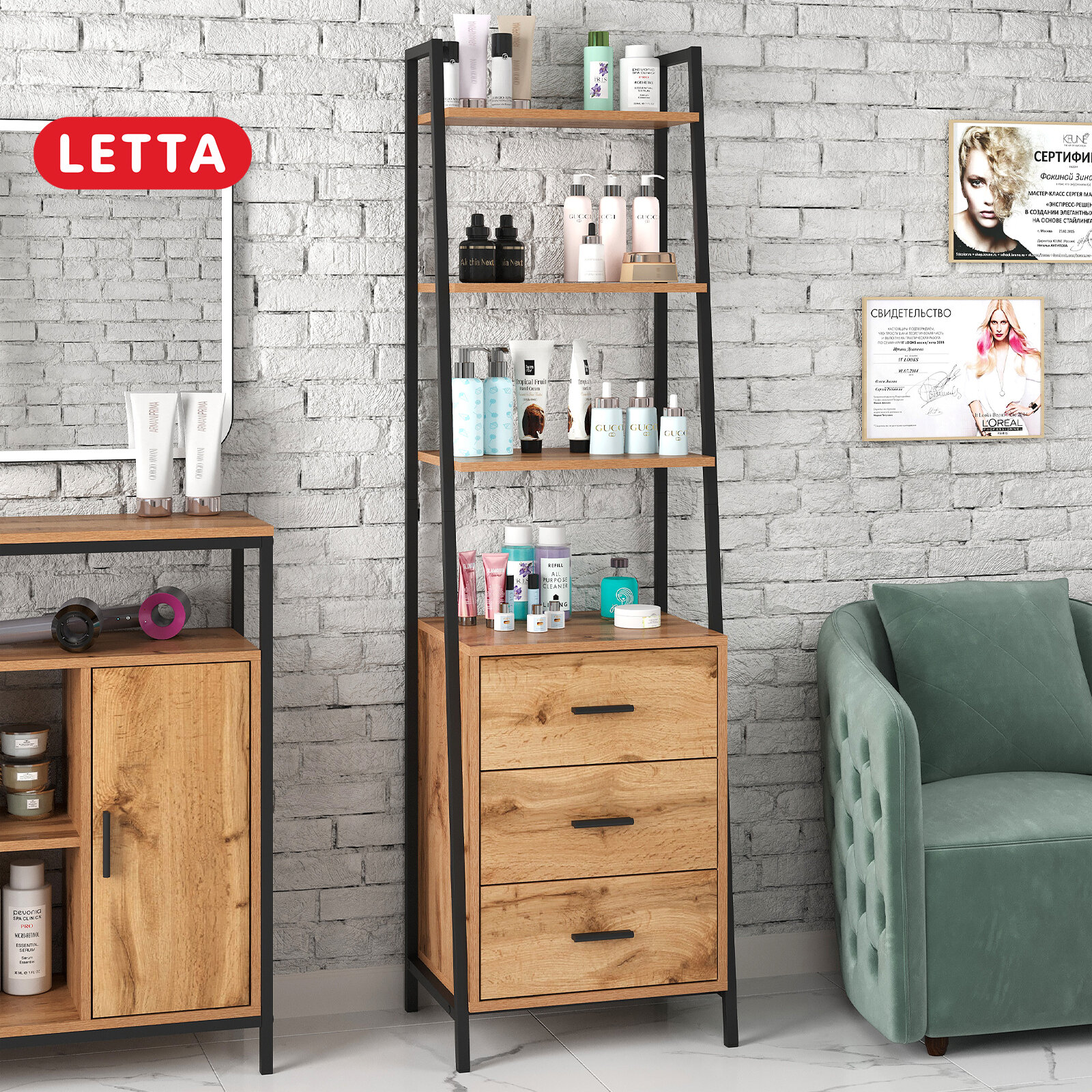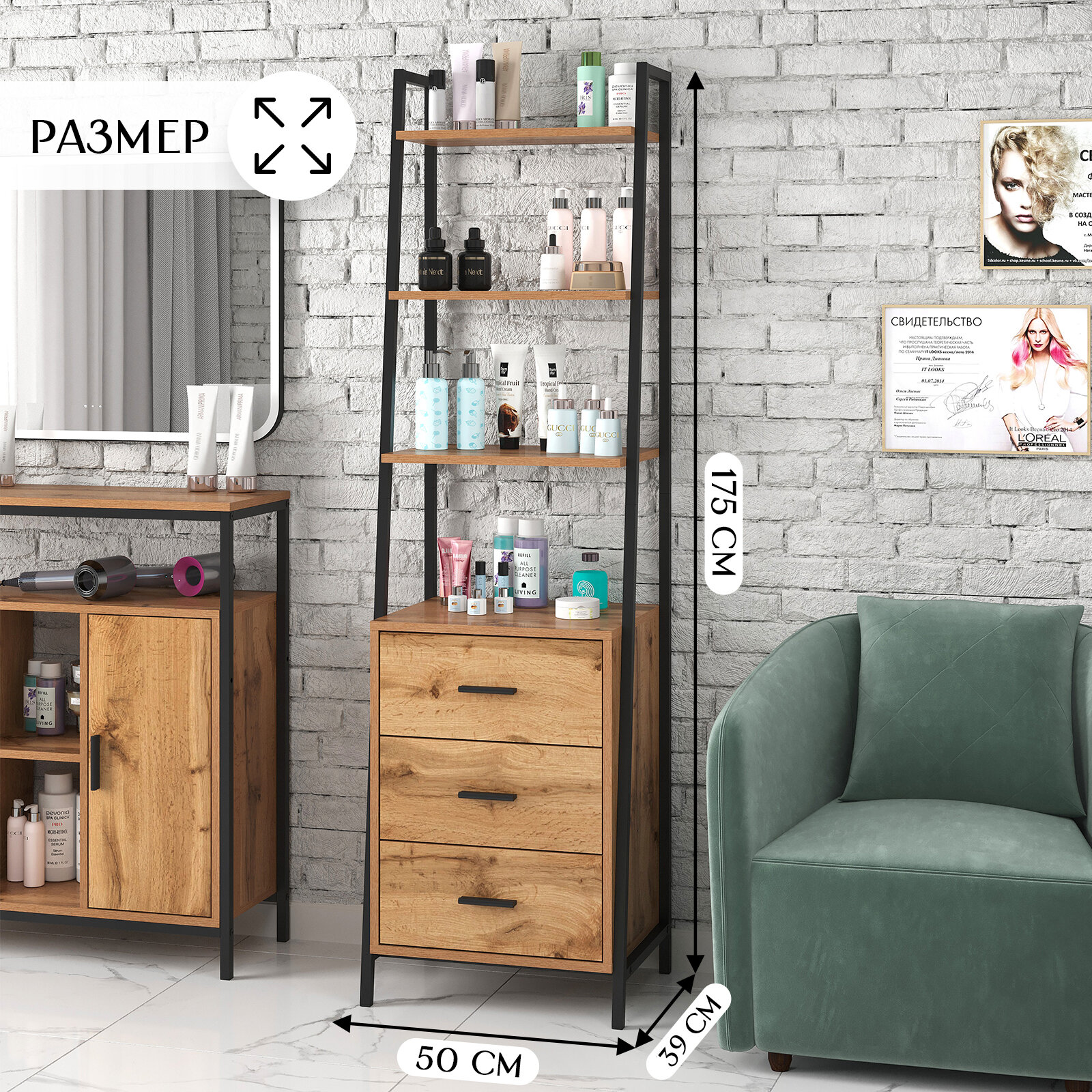 Стеллаж выполнен в современном стиле лофт, который отлично впишется в любой интерьер. Цвет "Дуб Вотан" придает изделию эксклюзивности и благородства.