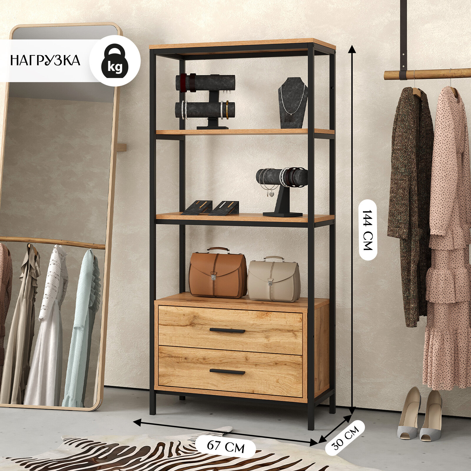 Стеллаж деревянный Frame 2 ящика Дуб Вотан - это современное и функциональное решение для хранения вещей. Он выполнен в стиле Лофт, что позволяет ему легко вписаться в любой интерьер.