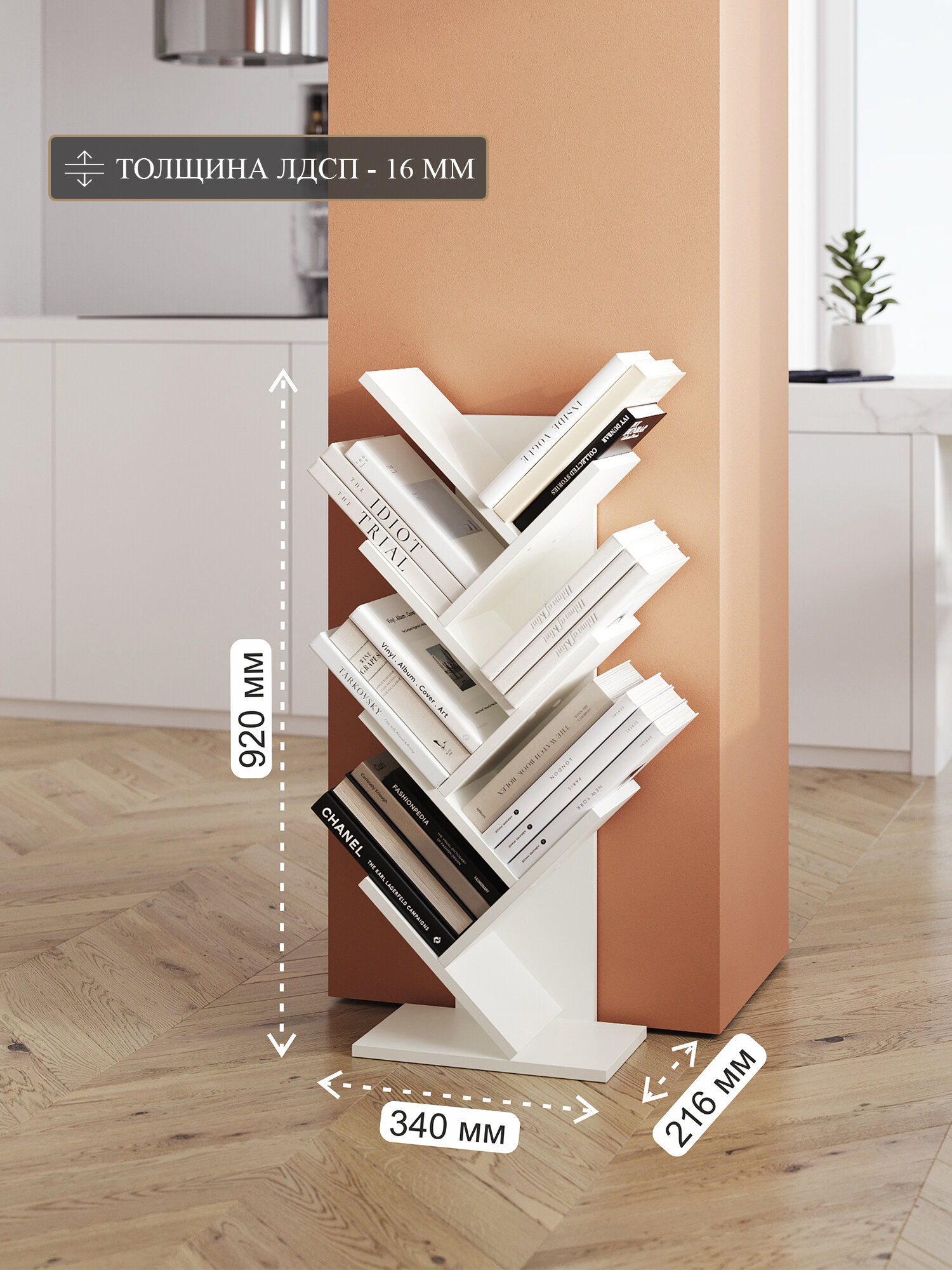 Стеллаж «Агния»: стильный деревянный напольный стеллаж для книг и декора (6 секций, белый, ЛДСП, лофт)
