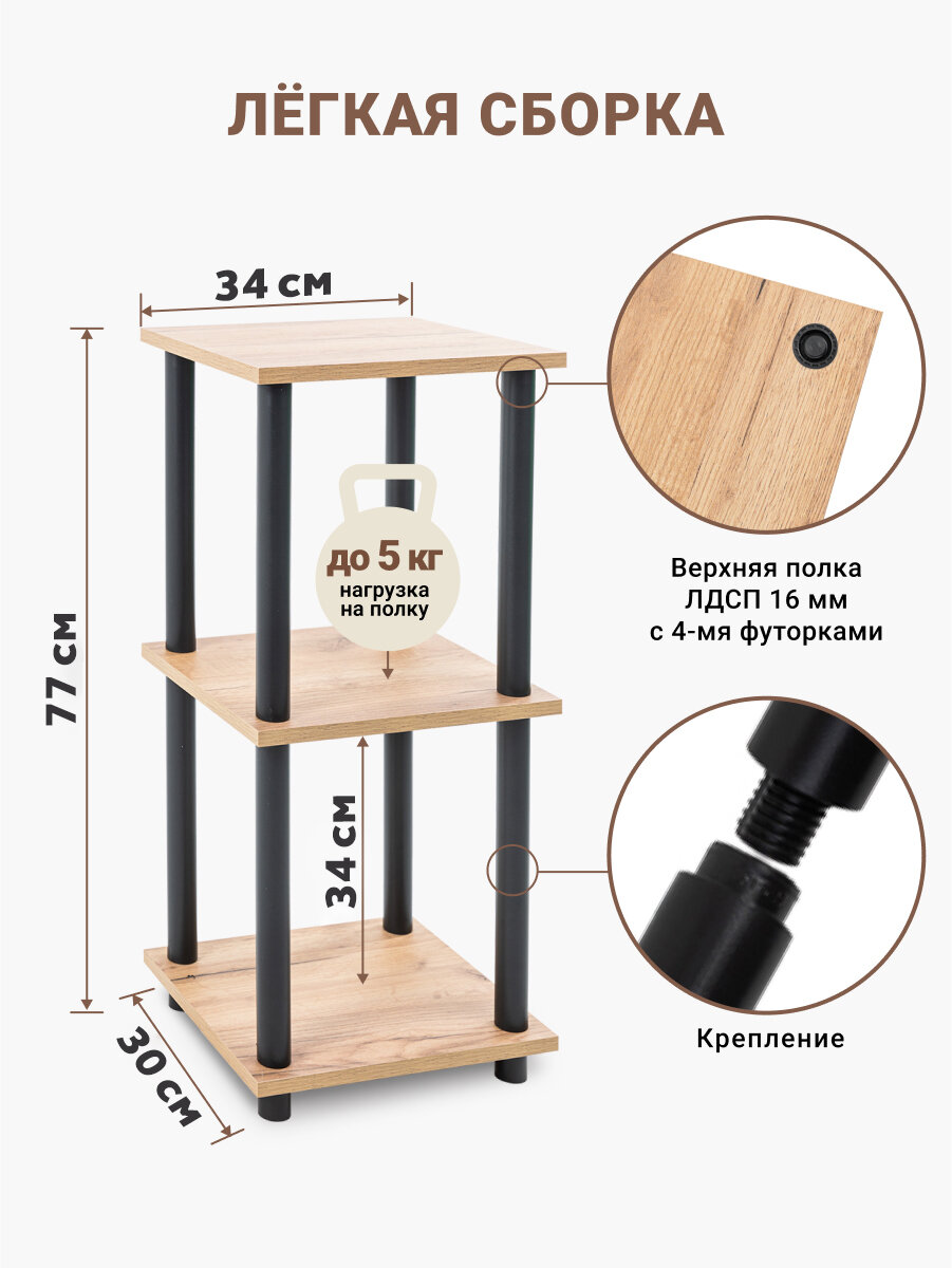 Стеллаж деревянный GASTRORAG 0770/3, полка напольная, этажерка для кухни, ванной, гостиной, спальни, 3 полки ЛДСП, размеры 34 х 30 х 77 см: сравнение цен, характеристики, фото, актуальное наличие и цены.