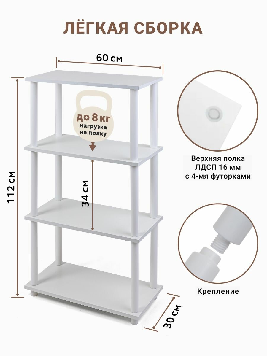 Стеллаж деревянный GASTRORAG 1110/4, Этажерка напольная, полка ЛДСП, 4 полки, размеры 60 х 30 х 110 см: сравнение цен, характеристики, фото, актуальное наличие и цены.