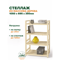 Стеллаж деревянный напольный 105х70х35 см, универсальный 4 полки: сравнение цен, характеристики, фото, актуальное наличие и цены.