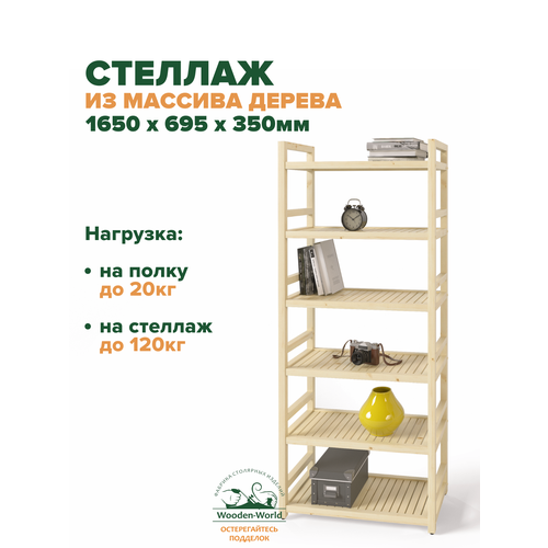 Купить Стеллаж деревянный напольный 165х70х35 см, универсальный 6 полок с доставкой по всей России.