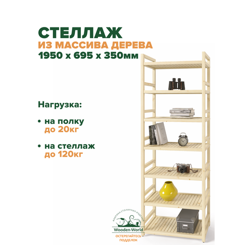 Купить Стеллаж деревянный напольный 195х70х35 см, универсальный 7 полок с доставкой по всей России.