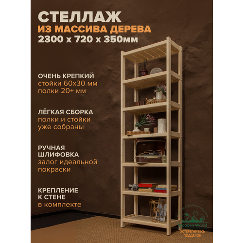 Купить Стеллаж деревянный напольный 230х72х35см Классический, этажерка 7 полок с доставкой по всей России. Стеллаж деревянный напольный 230х72х35см Классический, этажерка 7 полок: сравнение цен, характеристики, фото, актуальное наличие и цены.