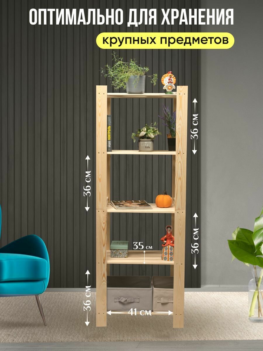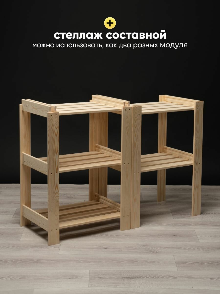 Стеллаж деревянный для дома. Предназначен для цветов, рассады, домашних растений, книг, хозяйственных принадлежностей. Выполнен из массива сосны. Стеллаж подходит для ванной комнаты и бани для косметики и полотенец. Эко стеллаж из натурального дерева- это отличное решение для детской комнаты, на нем идеально разместятся любимые книги, игрушки. На кухне эко-стеллаж может стать органайзером для посуды и утвари, перегородкой для зонирования пространства. В гостиной комнате напольная этажерка удобна для растений и декора, а так же для сувениров и книг. В прихожей и гардеробной можно использовать для хранения обуви, как открытую обувницу. Универсальная модель стеллажа поможет хранить инструменты в гараже и заготовки в кладовой и квартире. Служит отличной системой хранения в магазине и офисе. Идеальное решения для балкона и веранды. Детали цельные, не срощенные (т. е. не склеенные из нескольких маленьких). Прочная конструкция стеллажа с пазами и вместе с тем лëгкая, не громоздкая. Перпендикулярное расположение передних стоек относительно задних стоек обеспечивает лëгкий доступ к наполнению полок, и вместе с тем обеспечивает устойчивость в продольном и поперечном направлениях. Качество поверхности высочайшее, дерево строганое, при этом лицевая сторона выглядит как шлифованная. Поставляется в очень компактной упаковке в виде набора деталей для сборки. Легко собирается по подробной сборочной инструкции, приложенной в комплекте вместе с крепежом. Стеллаж можно собрать с одной отвëрткой. Соответствующий приложенным саморезам инструмент это отвëртка PZ1, либо такая бита для шуруповëрта, рекомендуем ими воспользоваться. Если же покупатель не обладает такой отвëрткой, то подойдет и PH1 и даже любая подобная, в обычном хозяйстве подходящая отвëртка находится, но при сборке несоответствующим инструментом следует соблюдать повышенную осторожность. Нагрузка до 20 кг на полку. Каждая полка собирается из реек с зазорами, что составляет половину ширины рейки и придаëт стеллажу лëгкости, "воздушности". Размеры габаритов указаны в карточке товара. Стеллаж экологически чистый, из северного хвойного дерева, без покрытия. Рекомендуется покрыть стеллаж маслом для дерева или натуральной краской. Красить в разобранном виде, каждую деталь отдельно. При покраске сплошной укрывной краской делать пробные выкрасы в местах вставки реек в пазы, т. к. при нанесении слоя краски зазоры уменьшаются и надлежит удостовериться в собираемости соединений. Может быть отличным подарком на День Рождения, 23 февраля, 8 марта, Новый год.