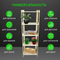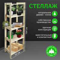 Стеллаж деревянный для дома. Предназначен для цветов, рассады, домашних растений, книг, хозяйственных принадлежностей. Выполнен из массива сосны. Стеллаж подходит для ванной комнаты и бани для косметики и полотенец. Эко стеллаж из натурального дерева- это отличное решение для детской комнаты, на нем идеально разместятся любимые книги, игрушки. На кухне эко-стеллаж может стать органайзером для посуды и утвари, перегородкой для зонирования пространства. В гостиной комнате напольная этажерка удобна для растений и декора, а так же для сувениров и книг. В прихожей и гардеробной можно использовать для хранения обуви, как открытую обувницу. Универсальная модель стеллажа поможет хранить инструменты в гараже и заготовки в кладовой и квартире. Служит отличной системой хранения в магазине и офисе. Идеальное решения для балкона и веранды. Детали цельные, не срощенные (т. е. не скленные из нескольких маленьких). Прочная конструкция стеллажа с пазами и вместе с тем лëгкая, не громоздкая. Перпендикулярное расположение передних стоек относительно задних стоек обеспечивает лëгкий доступ к наполнению полок, и вместе с тем обеспечивает устойчивость в продольном и поперечном направлениях. Качество поверхности высочайшее, дерево строганое, при этом лицевая сторона выглядит как шлифованная. Поставляется в очень компактной упаковке в виде набора деталей для сборки. Легко собирается по подробной сборочной инструкции, приложенной в комплекте вместе с крепежом. Стеллаж можно собрать с одной отвëрткой. Соответствующий приложенным саморезам инструмент это отвëртка PZ1, либо такая бита для шуруповëрта, рекомендуем ими воспользоваться. Если же покупатель не обладает такой отвëрткой, то подойдет и PH1 и даже любая подобная, в обычном хозяйстве подходящая отвëртка находится, но при сборке несоответствующим инструментом следует соблюдать повышенную осторожность. Нагрузка до 20 кг на полку. Каждая полка собирается из реек с зазорами, что составляет половиеу ширины рейки и придаëт стеллажу лëгкости, "воздушности". Размеры габаритов указаны в карточке товара. Стеллаж экологически чистый, из северного хвойного дерева, без покрытия. Рекомендуется покрыть стеллаж маслом для дерева или натуральной краской. Красить в разобранном виде, каждую деталь отдельно. При покраске сплошной укрывной краской делать пробные выкрасы в местах вставки реек в пазы, т. к. при нанесении слоя краски зазоры уменьшаются и надлежит удостовериться в собираемости соединений. Может быть отличным подарком на День Рождения, 23 февраля, 8 марта, Новый год.