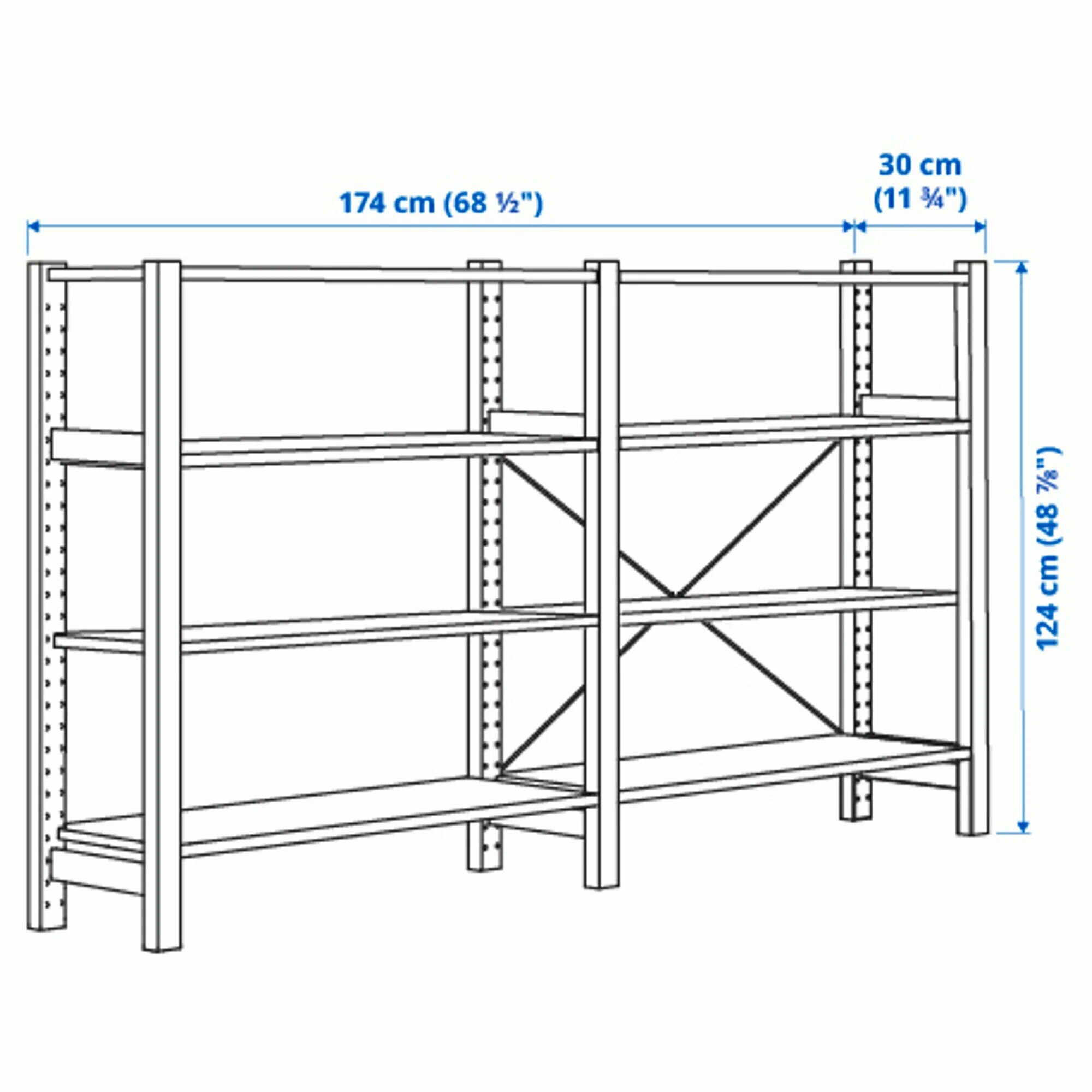 С размерами 174х30х124 см, стеллаж IKEA Ivar предоставляет достаточно места для хранения книг, игрушек, сувениров и других предметов. Шесть полок позволяют разместить все необходимые вещи.