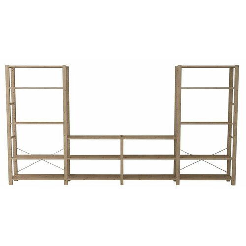 Сосна, из которой изготовлен стеллаж, обеспечивает его прочность и долговечность. Этот материал также обладает приятной на ощупь текстурой и привлекательным внешним видом, что делает стеллаж не только практичным, но и стильным элементом интерьера.