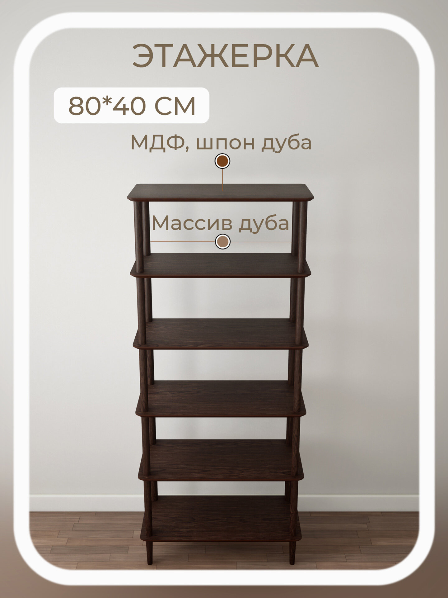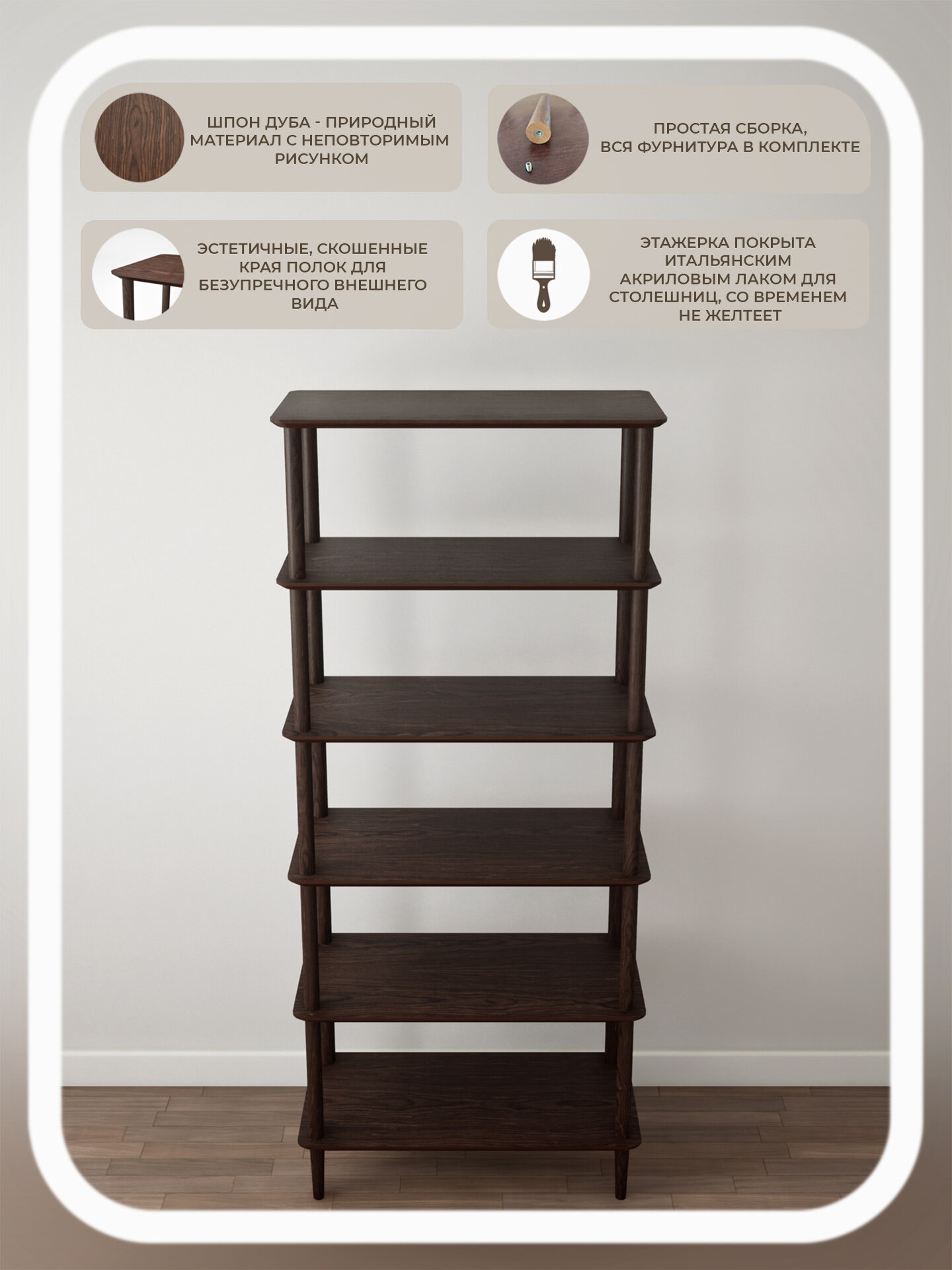 Стеллаж деревянный напольный книжный 6 полок STROGANINI, 80×40×186 см, дуб