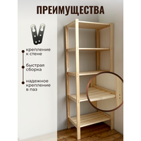 Деревянный модульный стеллаж для хранения напольный - это многофункциональный предмет интерьера, который станет незаменимым помощником в вашем доме. Изготовленный из массива сосны, этот стеллаж обладает прочностью и долговечностью, что позволяет выдерживать нагрузку нескольких книжных стопок, коробок с обувью или кухонных бытовых элементов. Стеллаж выполнен в стиле лофт, что придает ему современный вид. Натуральный цвет товара позволяет легко вписать его в любой интерьер, а открытая конструкция не загромождает пространство, а наоборот, разгружает его, экономя место. Высокий стеллаж деревянный - качественный компактный универсальный, полка подойдет как для хранения игрушек в детской, книг в гостиной и инструмента в гараже. Изготовлен из массива хвойных пород древесины сосна. Многофункциональный предмет интерьера. Стеллаж напольный стойка отличной подойдет для гардеробной как дополнительный мебельный аксессуар, на балкон подставка ярусная узкая для зонирования места. В загородный дом или на даче стеллаж станет выставочным декором под растения, цветы или рассаду. В бане разместит на себе комплект полотенец. Послужит отличным подарком для родных и близких. Хороший подарок маме под ее заготовки соленья. Этажерка с вместительными полочками соберет воедино всю любимую мелочь. В детскую полки под книги, под коробки игрушек или под одежду. В спальню, интерьер вы создаете сами. С открытыми полками не загромоздит пространство, а наоборот разгрузит его, с экономив место. При желании можно покрыть защитным составом, тонирующей морилкой, бесцветным лаком или просто антисептиком. Для сборки Вам понадобятся отвертка или шуруповерт. Производство России, собственная фабрика. Сборка простая, доставка в разборном виде. Стильный и одновременно универсальный дизайн loft.