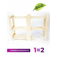 Стеллаж деревянный напольный от фабрики Lesovik - это идеальное решение для хранения и экономии места. Конструкция составная и позволит вам создать два компактных стеллажа высотой 86 см, а также перемещать полки в зависимости от ваших потребностей. Полка выдерживает нагрузку 25 кг, глубина 38 см и высота 30 см позволит разместить на ней все необходимые вещи. Высокий и вместительный он пригодится для лоджии и балкона, вместит банки с соленьями или старые вещи. Полезная покупка для школьника и ученика на 1 сентября - пригодится как подставка для книг и учебников. Замечательный подарок для мамы - мебель из натурального дерева для цветов комнатных, растений и рассады. Этажерка деревянная напольная прекрасно впишется в любой интерьер благодаря своему классическому стилю. Стеллаж кухонный удобен для хранения посуды, круп и специй. Этажерка на кухню в стиле лофт вам обязательно понравится и пригодится. Полка для ванной организует место для хранения в ванной комнате бытовой химии, вместит стиральный порошок, полотенца, мыло. Мужчине в гараж - для инструментов и материалов. Полки напольные в детскую комнату для игрушек. Аналог ikea, икея, леруа мерлен. Изготовлено из массива сосны, которая является значительно полезнее редких пород дерева, благодаря богатому набору полезных свойств. Благодаря хвойной породе дерева ваш дом наполнится прекрасным ароматом и укрепит Ваше здоровье. Сборка стеллажа своими руками займёт всего 30-40 минут, а привлечение к процессу детей добавит много радости и интересных моментов в совместном создании вашего интерьера! Для сборки Вам понадобятся отвертка или шуруповерт. На стойках изделия имеются отверстия для соединительных саморезов (саморезы идут в комплекте). Рекомендуем использовать лак или воск для защиты дерева и продления срока службы. Распродажа Черная пятница