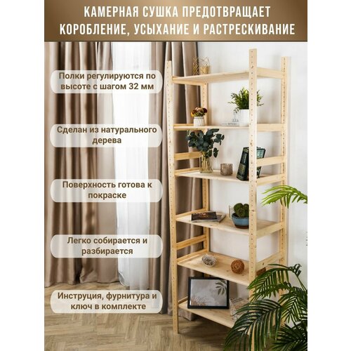 Новинка от Timber&Stylе! Высокий, прочный, усиленный стеллаж со сплошными полками и креплением на мебельный конфирмат. Благодаря этому решению максимальная нагрузка на полку составляет 50кг. Деревянные стеллажи Timber&Style из серии Гигант выполнены в 3 размерных вариантах и представляют собой конструктор, конфигурацию которого вы можете выбирать сами. Этажерка состоит из трёх секций высотой 70см, которые вы легко можете соединить в один высокий стеллаж 211см, или в пару стеллажей высотой 140 и 70см, или приобретя ещё один стеллаж, вы можете соединить их не только по высоте, но и по ширине, создав под себя целую систему хранения. В отличие от конкурентов полки наших стеллажей цельные, изготовлены из мебельного щита толщиной 14мм, которые вы можете установить на удобной для вас высоте. Такая конструкция полки позволяет без проблем хранить как мелкие и сыпучие предметы, не говоря о том, что такие полки выдерживают гораздо большую нагрузку, чем обычные рейки. Так же плюсом является простота сборки: полки уже готовы и их останется лишь прикрутить к стойкам (комплект фурнитуры, ключ-шестигранник и инструкция идут в комплекте). Выполнен стеллаж из экологически чистого материала - дерева, а именно массива сосны. Наш стеллаж является универсальной системой хранения, которая удобно впишется в любой интерьер и сэкономит пространство. По своим характеристикам и качеству не уступает, а зачастую и превосходит стеллажи из икеа (ikea) и леруа. Рекомендуем покрыть этажерку подходящим лакокрасочным материалом, исходя из области использования и цветовых предпочтений. Для большей устойчивости конструкции рекомендуем прикрепить стеллаж к стене. Деревянный стеллаж станет выгодным приобретением для себя и отличным подарком на новоселье, новый год, день рождение для друзей и родителей. У нас есть акции и распродажи, вы можете купить наши товары в подарок со скидкой. Компания Timber&Style занимается деревообработкой с 1951 года. Продукция фирмы - уникальное сочетание вековых традиций и современных технологий.
