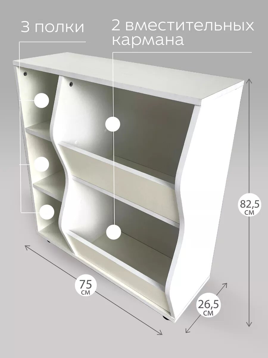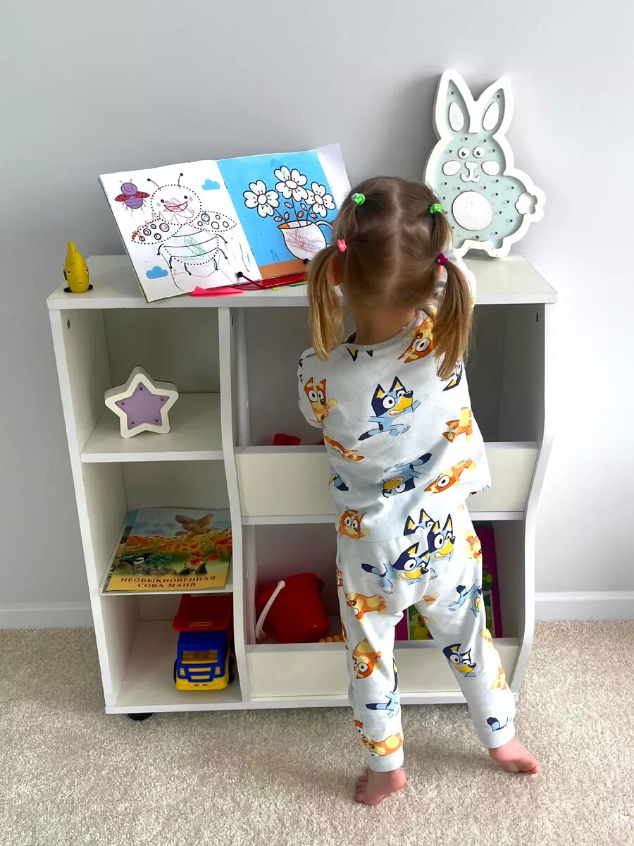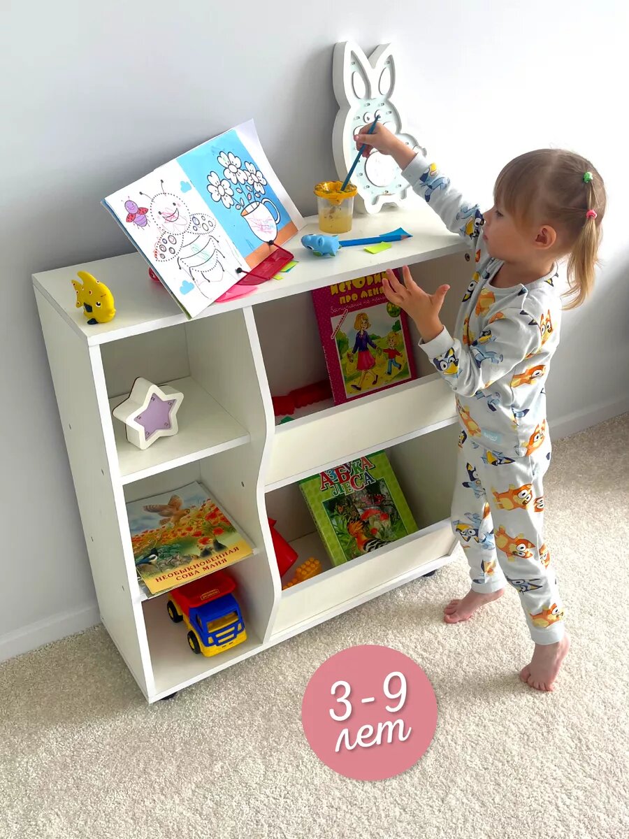 Наш стеллаж для игрушек и книг - это не просто мебельный предмет, это часть уютного уголка вашего дома, наполненного радостью и теплом. Благодаря деревянной конструкции он прослужит вам долгие годы, сохраняя свою прочность и надежность. Белый цвет стеллажа придаст комнате легкость и воздушность, а его универсальный дизайн позволит гармонично вписать его в любой интерьер.