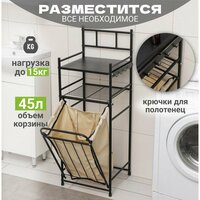 Стеллаж имеет размеры 38х35х125 см и объем корзины 45 литров, что делает его вместительным и удобным для использования. Цвет корпуса – черный, что позволяет стеллажу гармонично вписаться в любой интерьер.