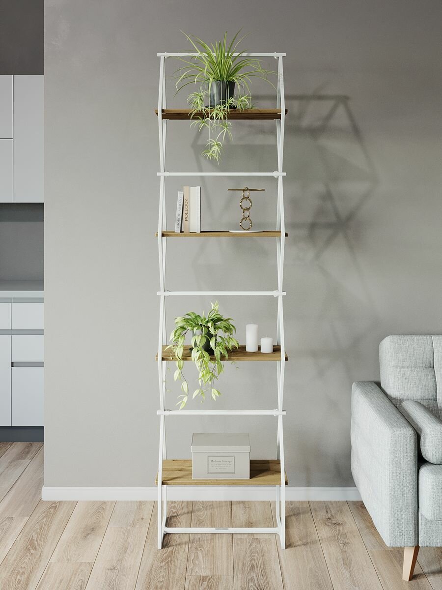 Прочный металлический каркас обеспечивает надежность и долговечность стеллажа, а четыре полки позволяют разместить книги, игрушки или предметы интерьера.