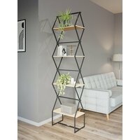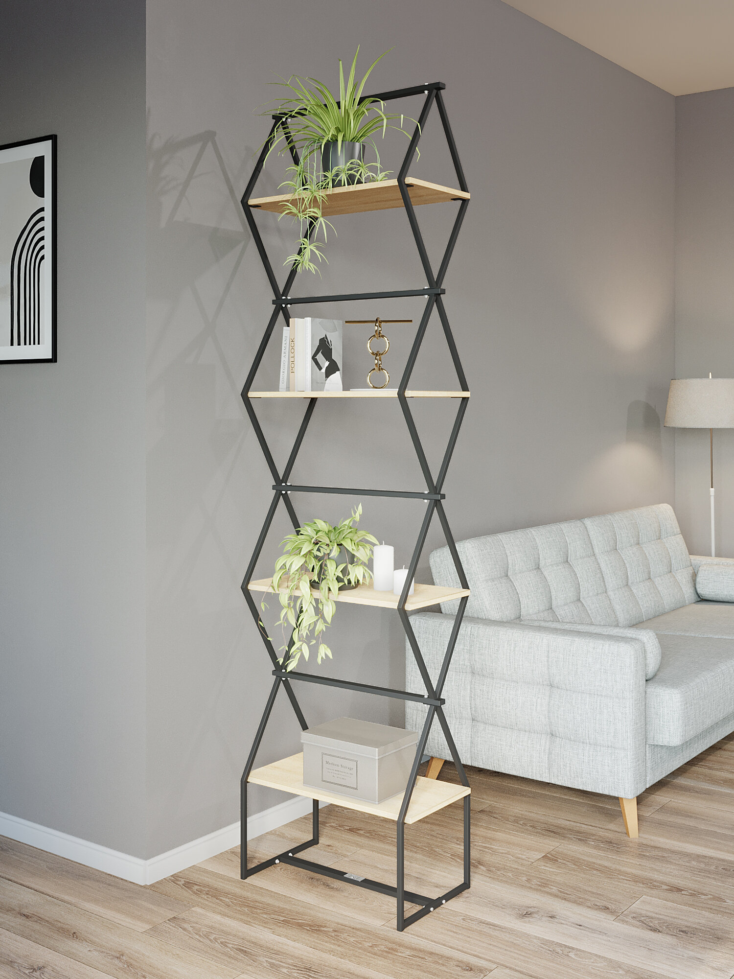 Стеллаж "Ромбо стS" выполнен в стильном черном цвете с оттенком дуба сонома, что позволяет ему гармонично вписаться в любой интерьер и подчеркнуть индивидуальность владельца.