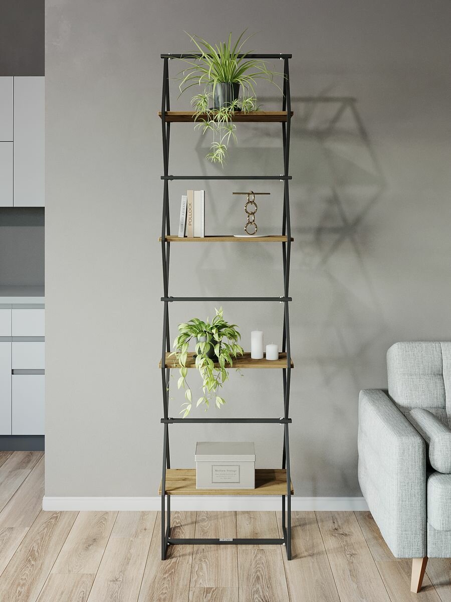 Прочный металлический каркас обеспечивает надежность и долговечность стеллажа, а четыре полки позволяют разместить на них книги, игрушки, предметы интерьера или цветы.