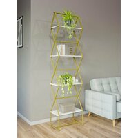 Стеллаж выполнен в современном дизайне, который легко впишется в любой интерьер. Золотой и белый цвета придают изделию особый шарм и элегантность.