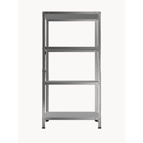 Стеллаж изготовлен из оцинкованной стали, что обеспечивает его долговечность и устойчивость к коррозии.
