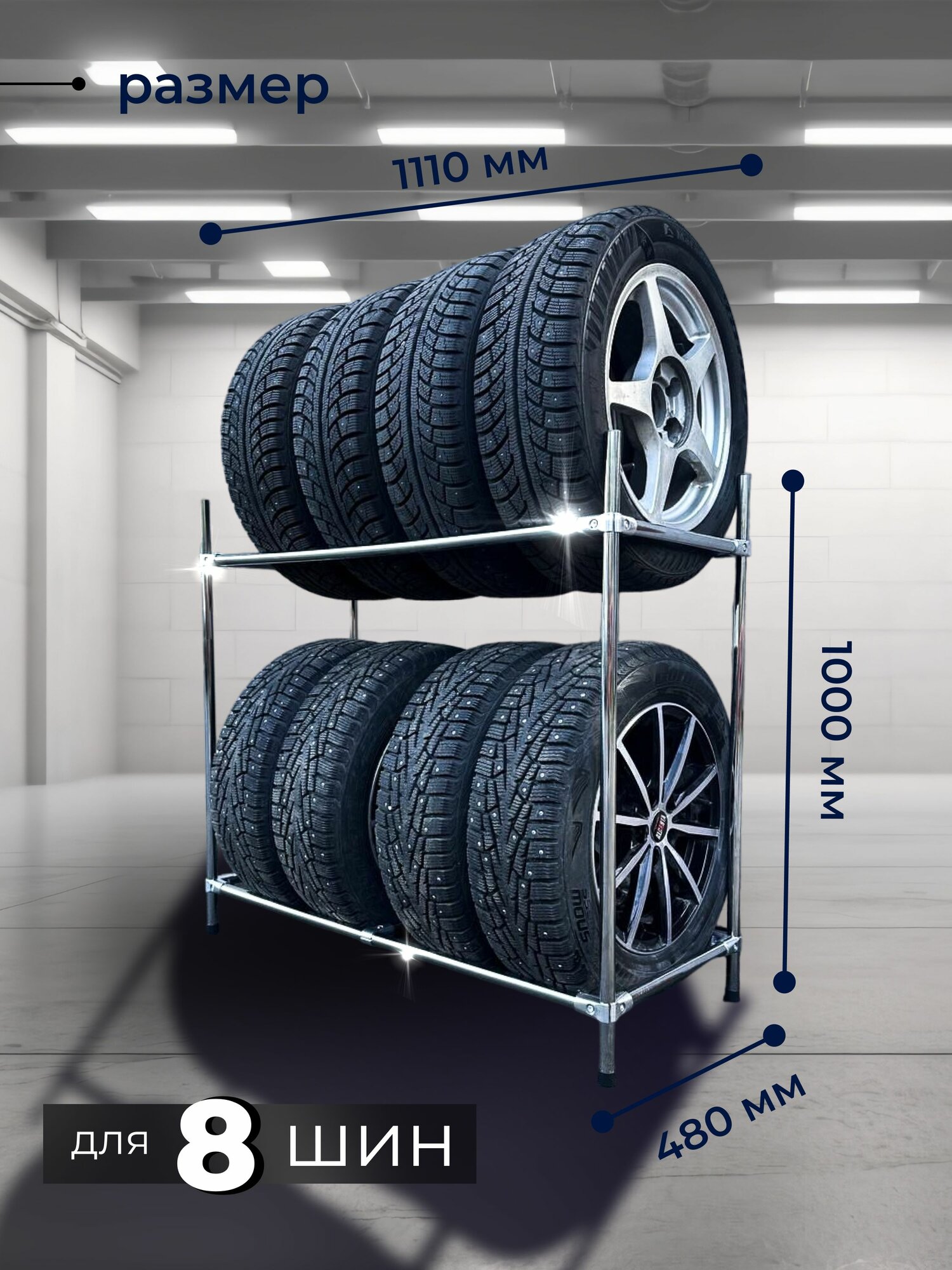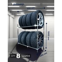 Стеллаж для шин и колёс - длина 1110 мм, ширина 480мм, высота 1000мм.