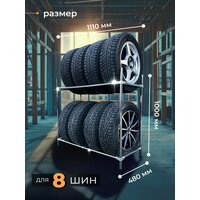 Стеллаж для шин и колёс - длина 1110 мм, ширина 480мм, высота 1000мм.