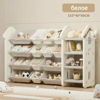 Купить Стеллаж для хранения игрушек имеет длину 153 см, ширину 40 см и высоту 89 см, с доставкой по всей России.
