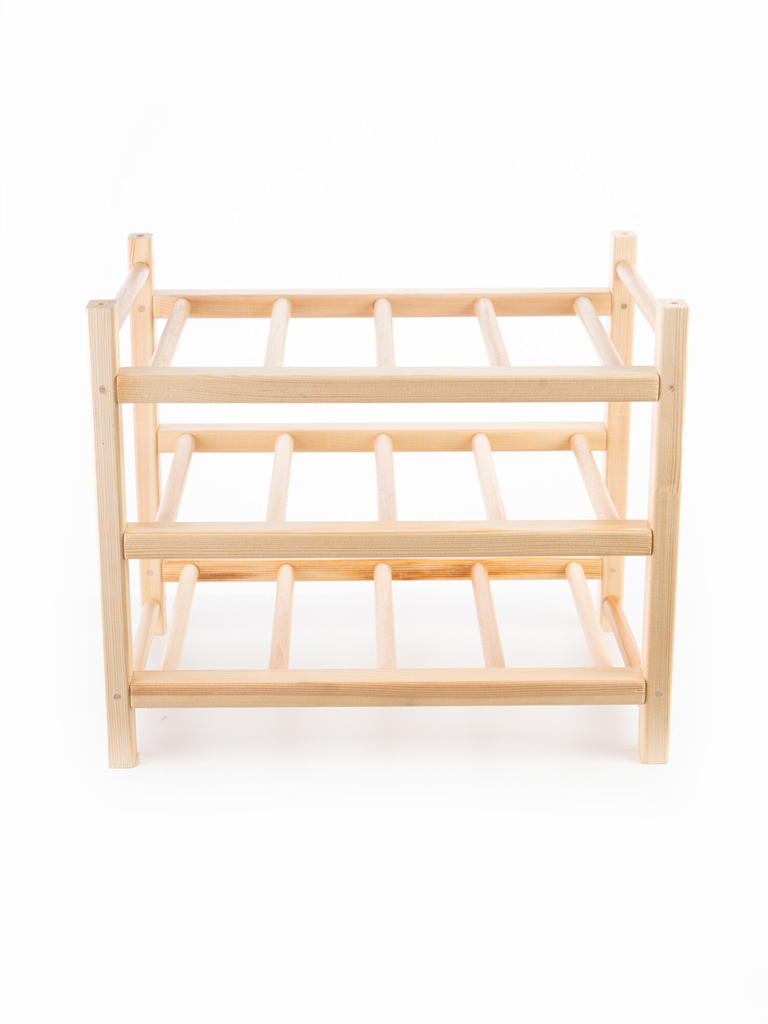 Стильное и удобное решение для хранения 12 бутылок вина, сока или воды, а если этого недостаточно, то можно поставить полки друг на друга. Хотите, чтобы стеллаж подходил к вашему интерьеру? Деревянная поверхность легко окрашивается и позволяет вам выбрать цвет, который будет гармонировать с вашим пространством. Отличный подарок для любитeлей винa, обеспечивающий аккуратное и практичное xранeние. Габариты подставки в собранном виде составляют 41х30х34 см, что делает его компактным и удобным для размещения на кухне или в гостиной. В комплектацию входят 4 шканта для установки полок друг на друга. Требуется самостоятельная сборка.