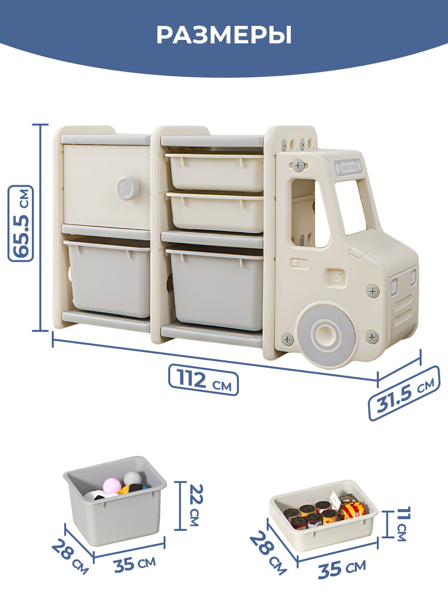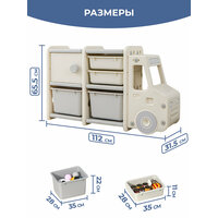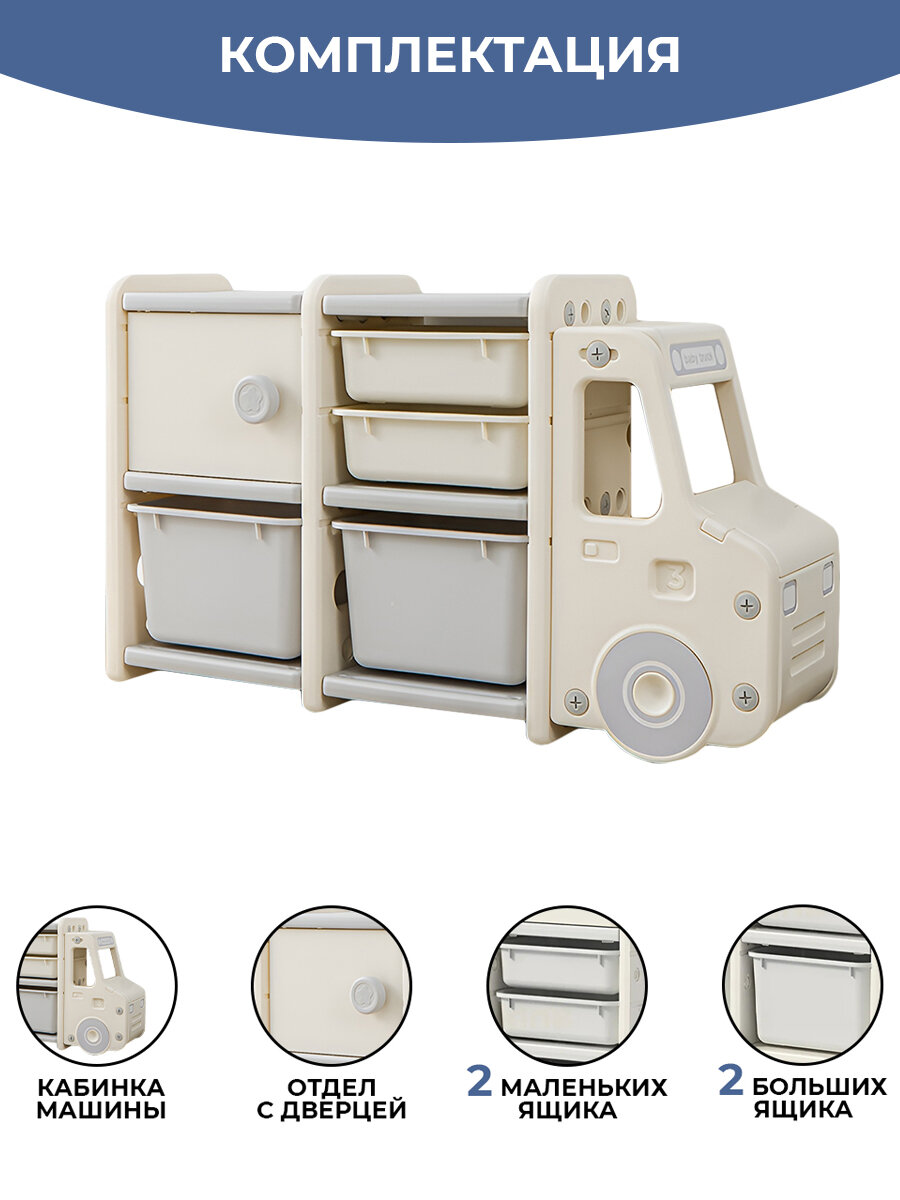 Стеллаж для игрушек BABY CAR 112х32х66см пластик, с ящиками, бежевый; серый: сравнение цен, характеристики, фото, актуальное наличие и цены.