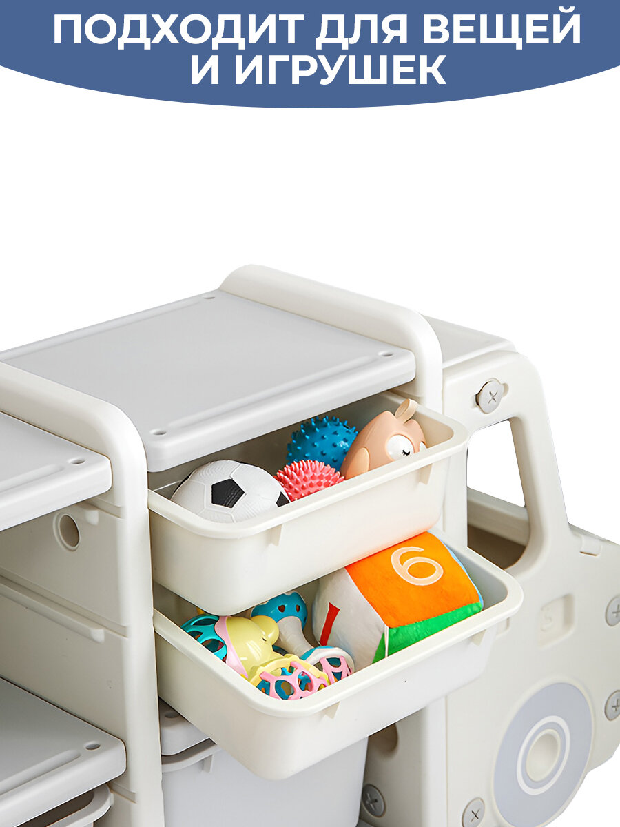 Купить Стеллаж для игрушек BABY CAR 112х32х66см пластик, с ящиками, бежевый; серый с доставкой по всей России.