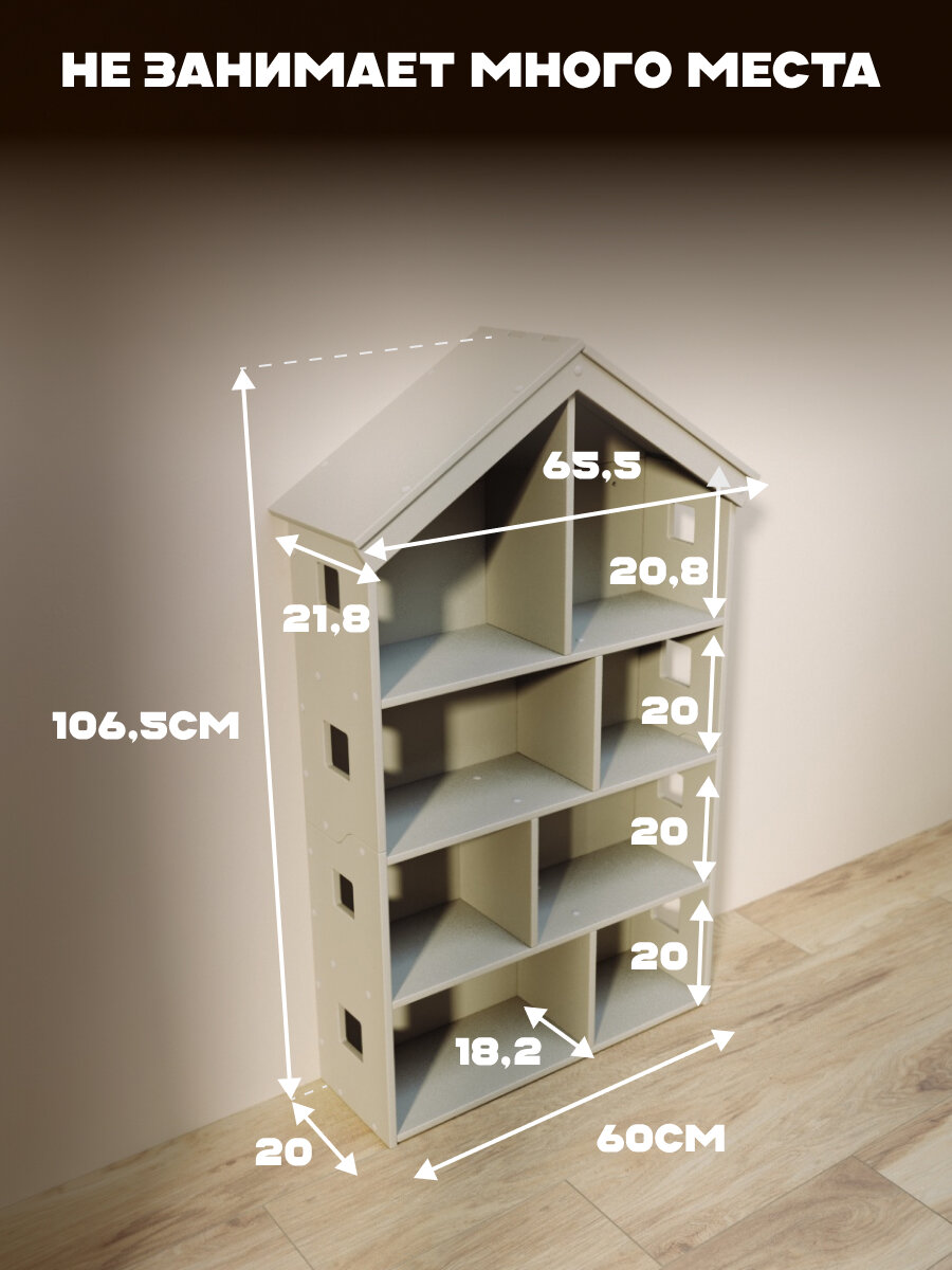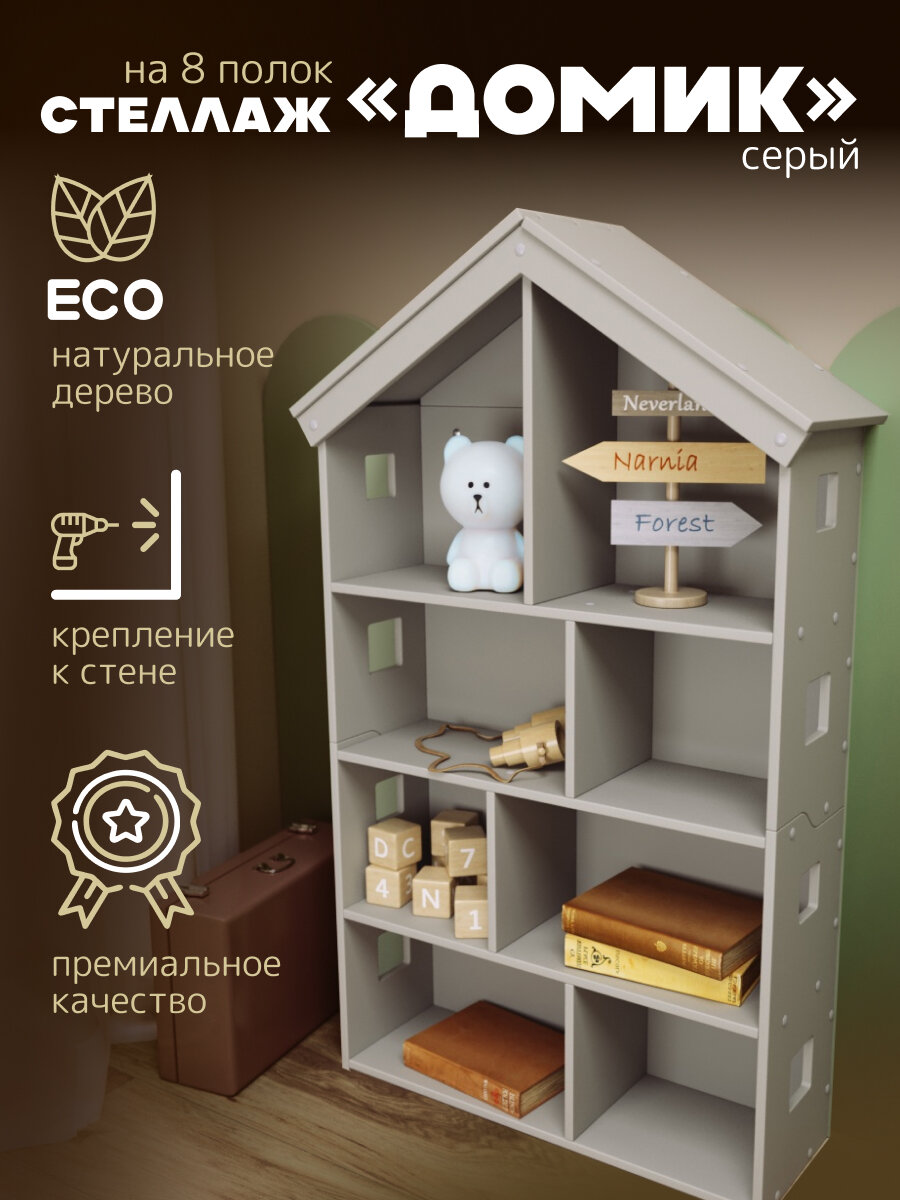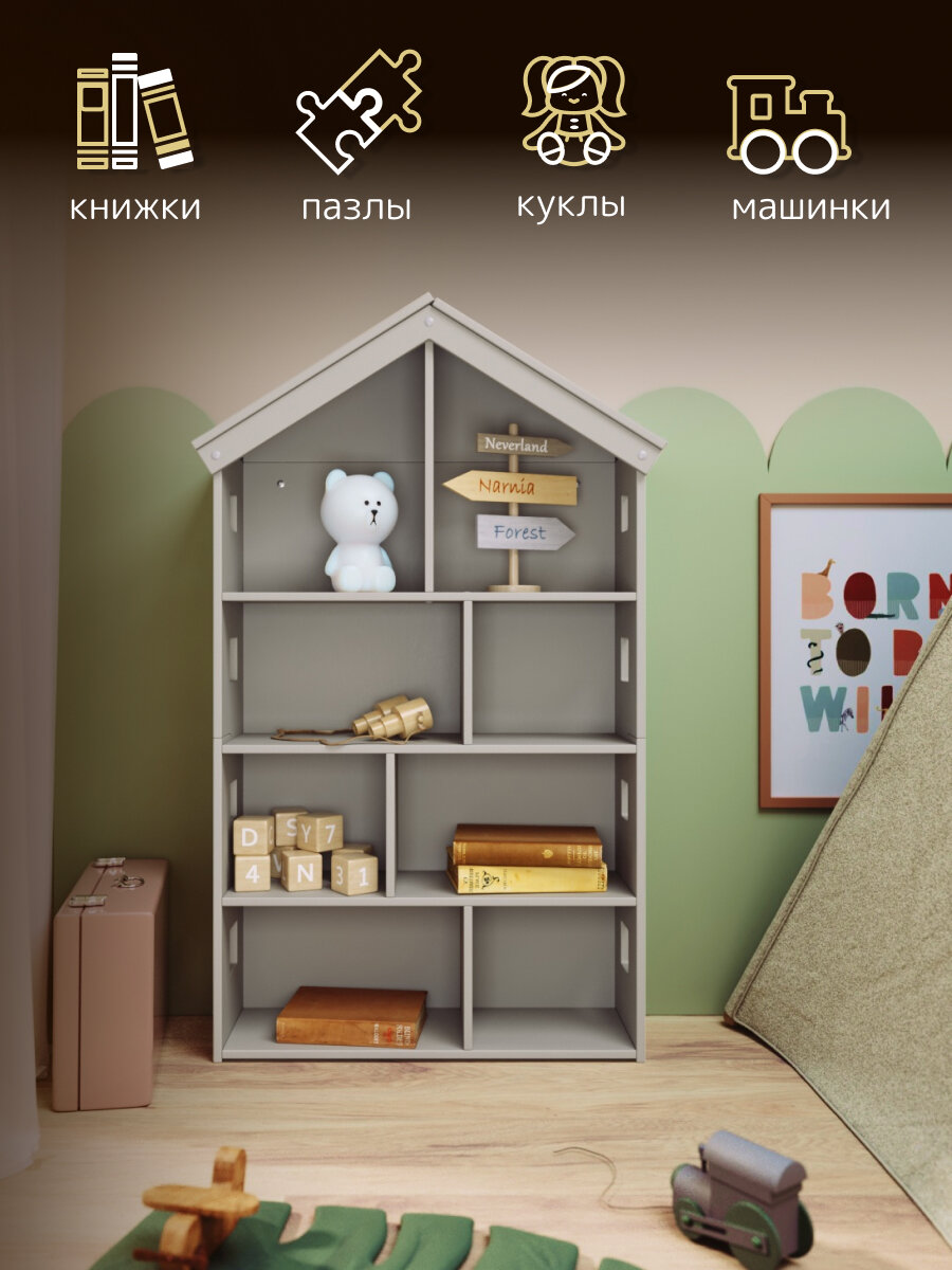Стеллаж для игрушек «домик» для детской и гостиной от «Pappado», цвет серый: сравнение цен, характеристики, фото, актуальное наличие и цены.