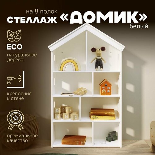 Мебель для детской комнаты легко передвигается, достаточно убрать фиксирующие к стене крепления. Шкаф для игрушек хранение обеспечит надежное: полочки для хранения позволяют держать все нужное на видном месте. Детская мебель в комнату из дерева не требует сложного ухода. Любимое место для детских игр — это пол, а полки нашего шкафа для игрушек располагаются совсем рядом. Полки для комнаты позволяют легко поддерживать порядок, хранить учебники, тетради и канцелярские принадлежности. Шкафы для одежды такая конструкция не заменит, но детский шкаф хранение вещей обеспечит. Домик для детей на дачу переедет без потерь и поможет там создать «свое» пространство.