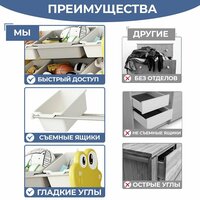 | Дополнительная информация | 3 отдела с дверцами, 3 больших ящика (32,2х26,5х21,1см), 3 полки, основа |