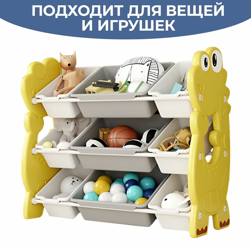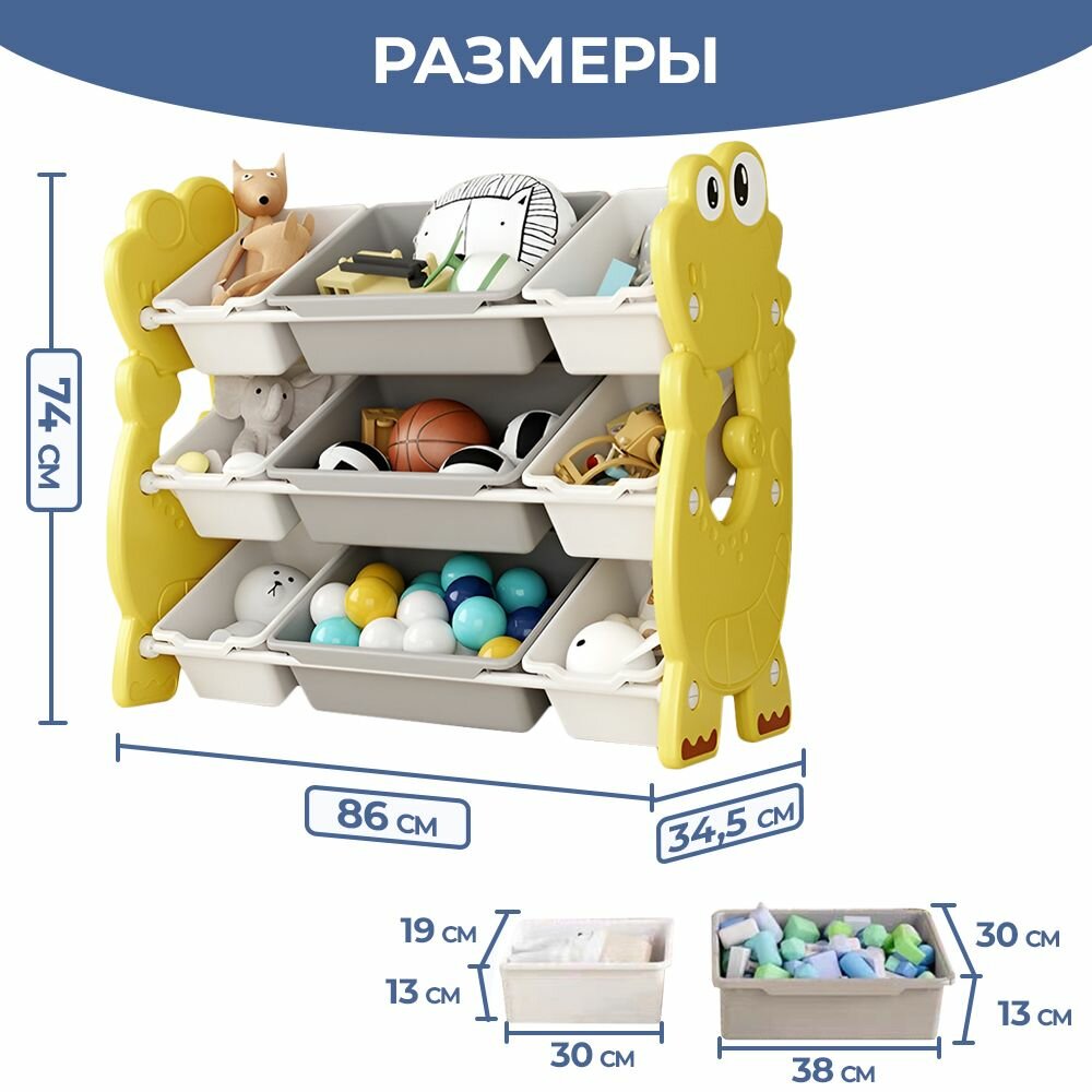 Купить Стеллаж для игрушек LESTI Дракоша, 86х35х74, желтый; белый; серый с доставкой по всей России.