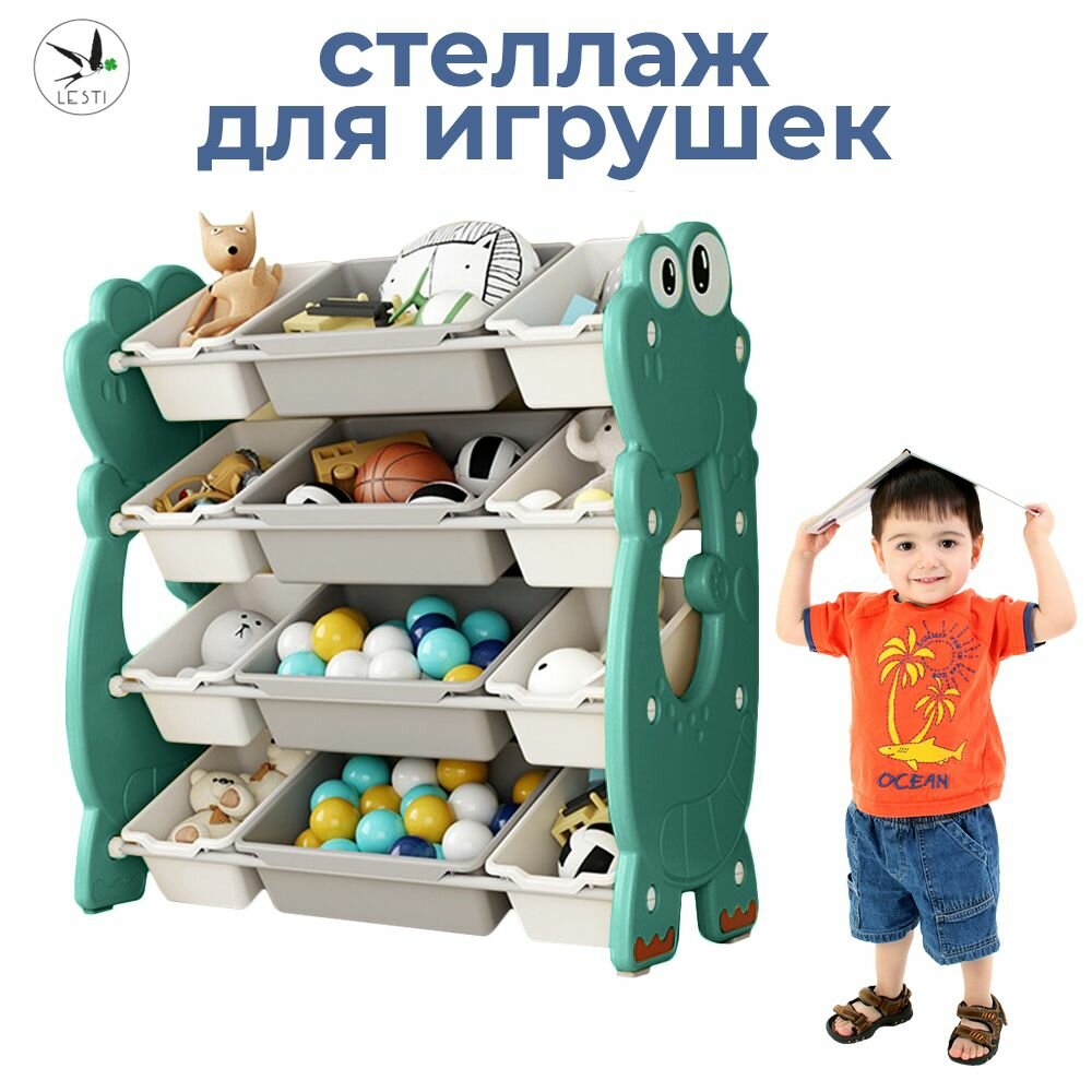 Стеллаж для игрушек LESTI Дракоша, 86х40х92 см, зеленый; белый; серый: сравнение цен, характеристики, фото, актуальное наличие и цены.