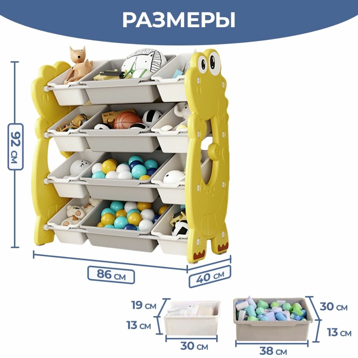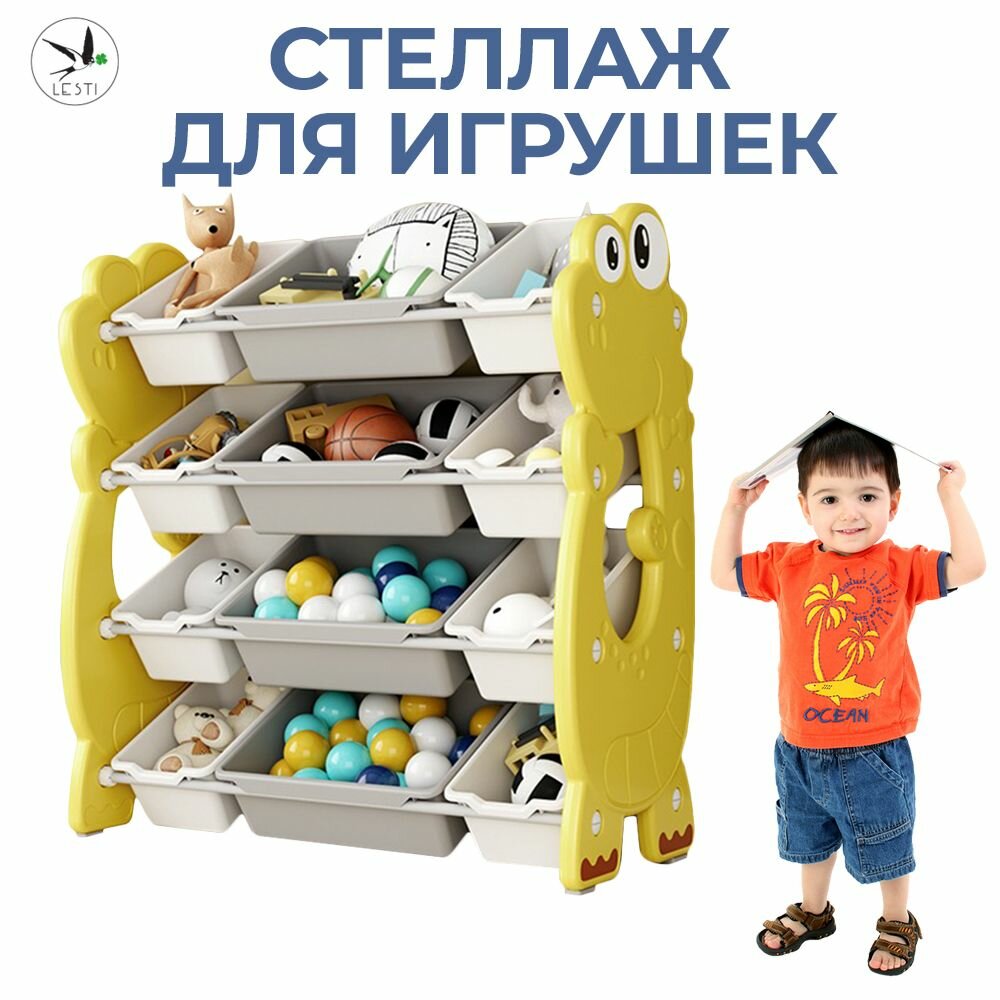 Купить Стеллаж для игрушек LESTI Дракоша, 86х40х92, желтый; белый; серый с доставкой по всей России.