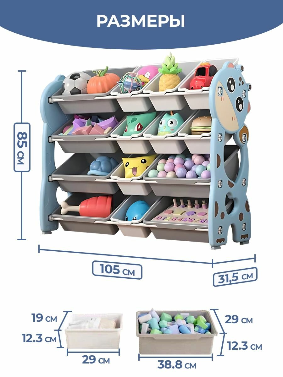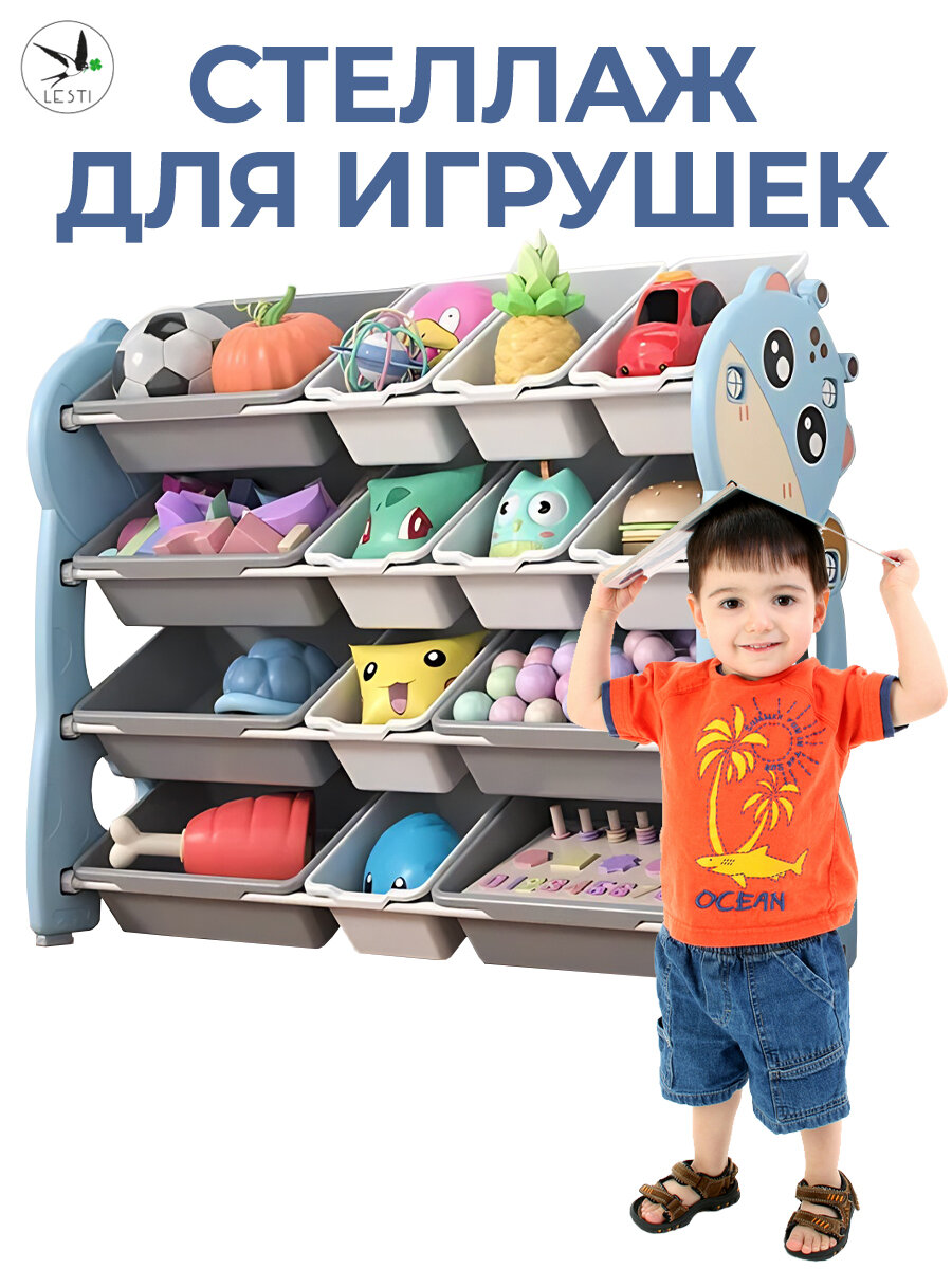 Купить Стеллаж для игрушек LESTI Жираф 8, 105х32х85см, голубой; белый; серый с доставкой по всей России. Стеллаж для игрушек LESTI Жираф 8, 105х32х85см, голубой; белый; серый: сравнение цен, характеристики, фото, актуальное наличие и цены.