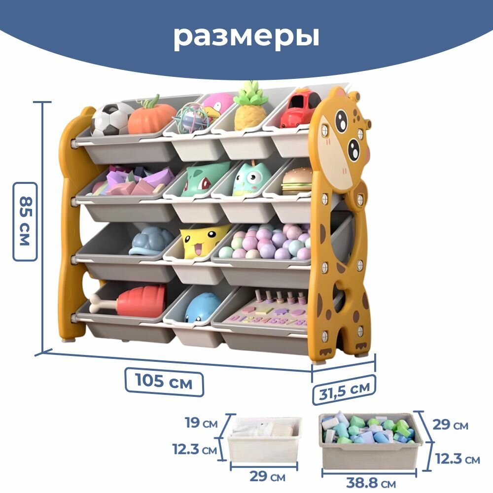 Купить Стеллаж для игрушек LESTI Жираф 8, 105х32х85см, желтый; белый; серый с доставкой по всей России. Стеллаж для игрушек LESTI Жираф 8, 105х32х85см, желтый; белый; серый: сравнение цен, характеристики, фото, актуальное наличие и цены.