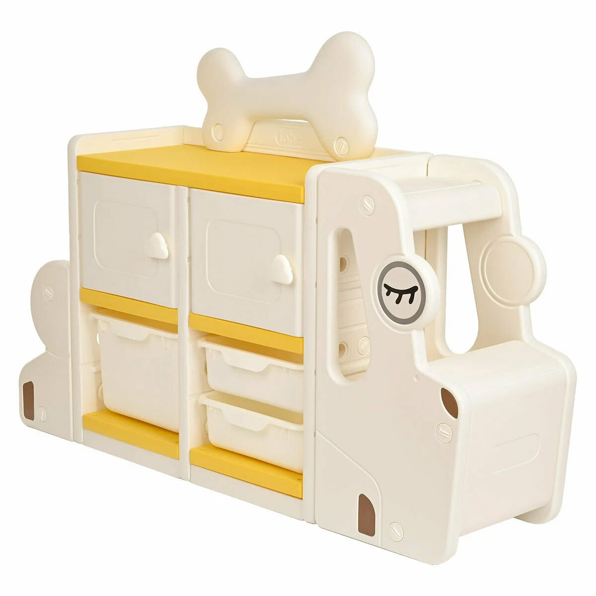 Стеллаж для игрушек Pituso с ящиками Pussy dog, Бежевый/жёлтый, 125 х 33 х 89 см: сравнение цен, характеристики, фото, актуальное наличие и цены.