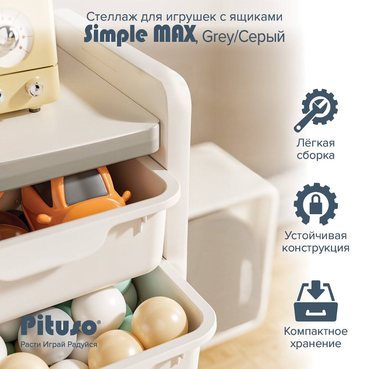 Купить Стеллаж для игрушек в детскую Pituso «Simple Max Beige», с ящиками, цвет бежевый с доставкой по всей России.
