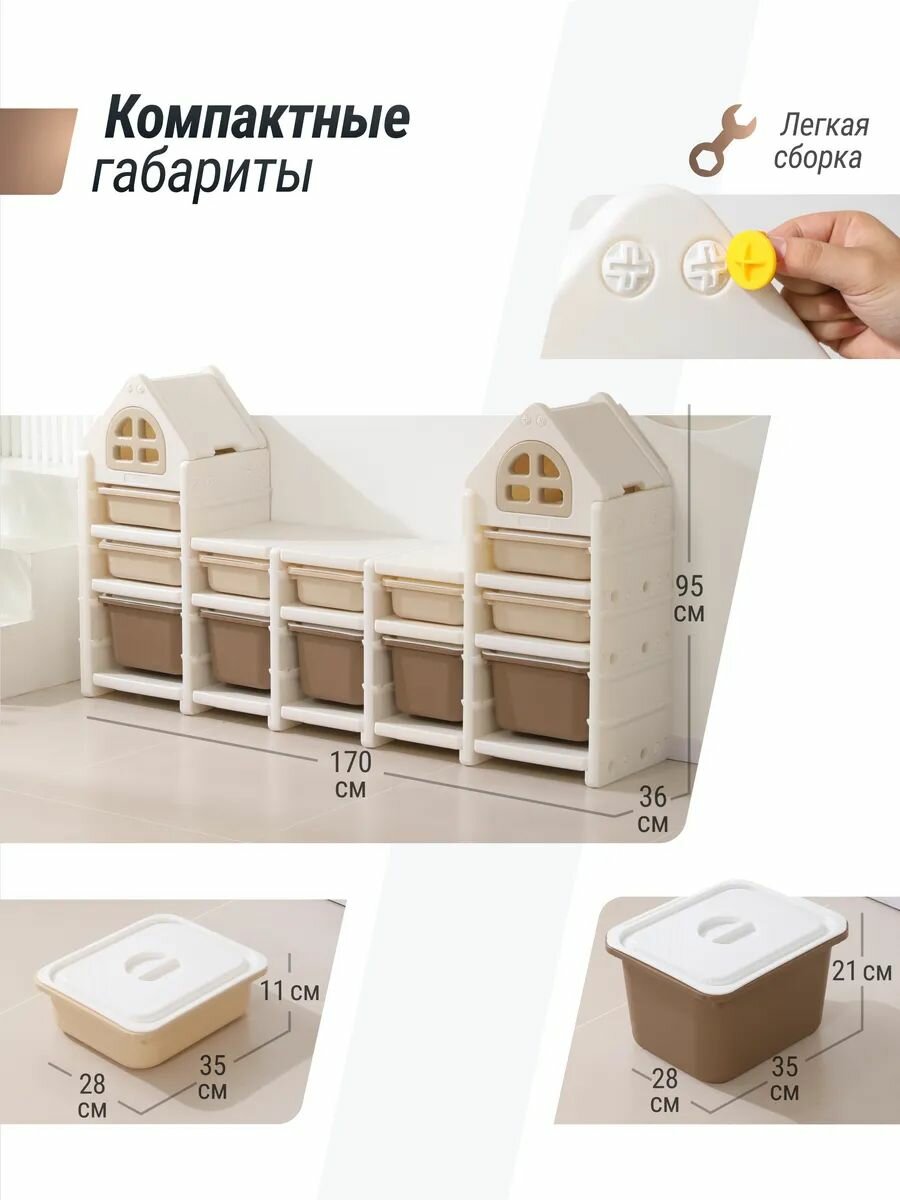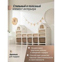 Эта модель стеллажа идеально подойдет для хранения игрушек и других детских вещей, благодаря высокому качеству материалов и точной конструкции. Главное преимущество этого стеллажа - это безопасность материалов, из которых он изготовлен.