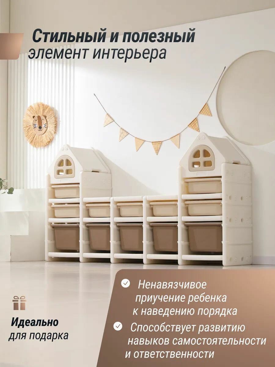 Наш пластиковый стеллаж для игрушек имеет светлую цветовую гамму, что позволяет ему идеально вписаться в любой интерьер и прекрасно подойти для детских комнат мальчиков и девочек. Этот стеллаж - прекрасное решение для хранения как мягких игрушек, так и более тяжелых предметов.
