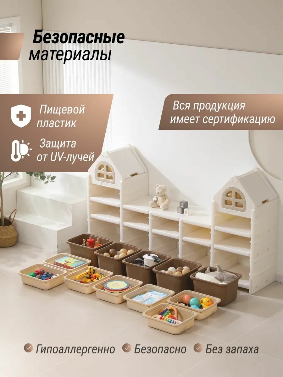 Одним из главных требований для детских игрушек и аксессуаров является безопасность материалов. Мы обеспечиваем нашим потребителям безопасность стеллажа, чтобы вы могли хранить игрушки и другие вещи с чувством спокойствия, не волнуясь о шпильках и острых краях, которые могут нанести вред вашим детям.