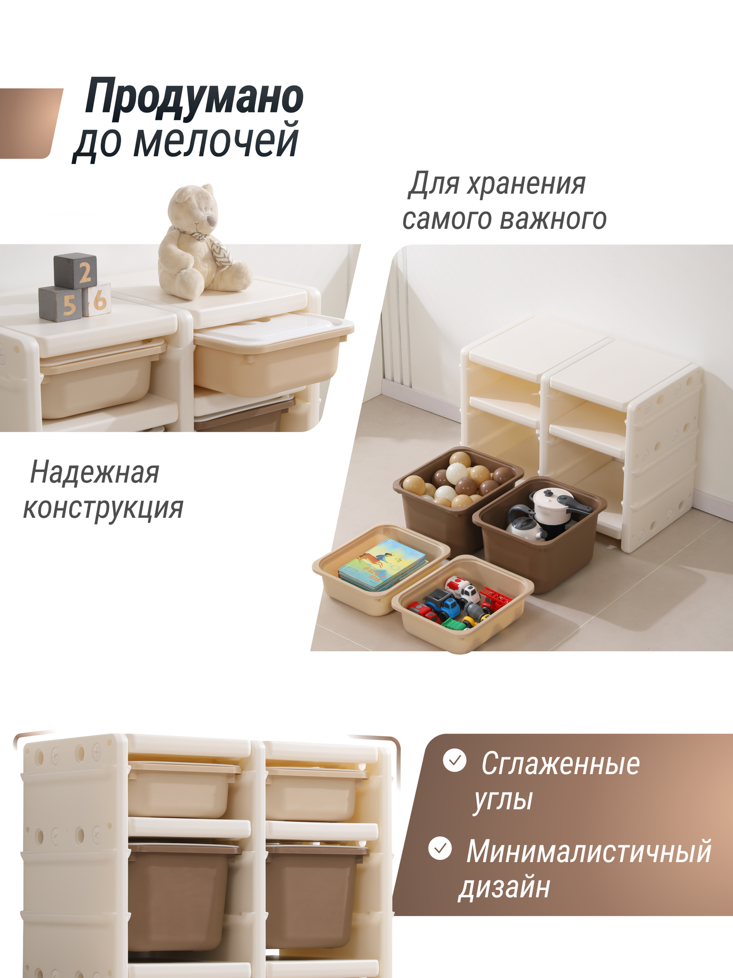 Купить Стеллаж для игрушек UNIX Kids Camel 4 ящика, напольный, с корзинами, пластиковый, в детскую комнату для хранения с доставкой по всей России.