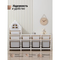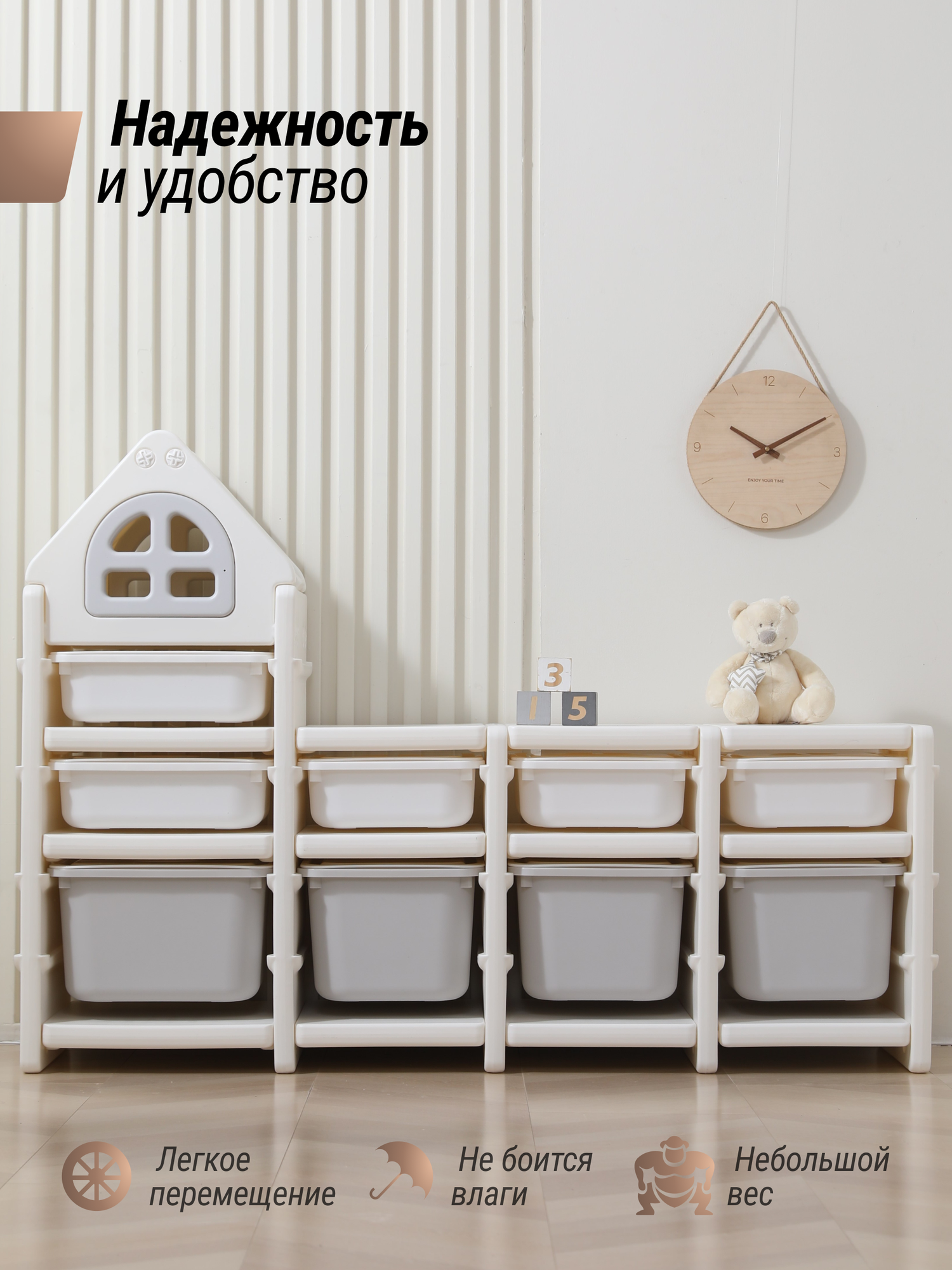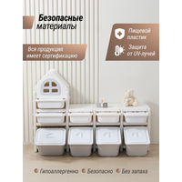 Купить Стеллаж для игрушек Монтессори UNIX Kids Grey 9 ящиков, напольный, с корзинами, пластиковый, в детскую для хранения с доставкой по всей России.