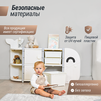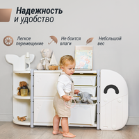 Наш пластиковый стеллаж для игрушек имеет светлую цветовую гамму, что позволяет ему идеально вписаться в любой интерьер и прекрасно подойти для детских комнат мальчиков и девочек. Этот стеллаж - прекрасное решение для хранения как мягких игрушек, так и более тяжелых предметов.